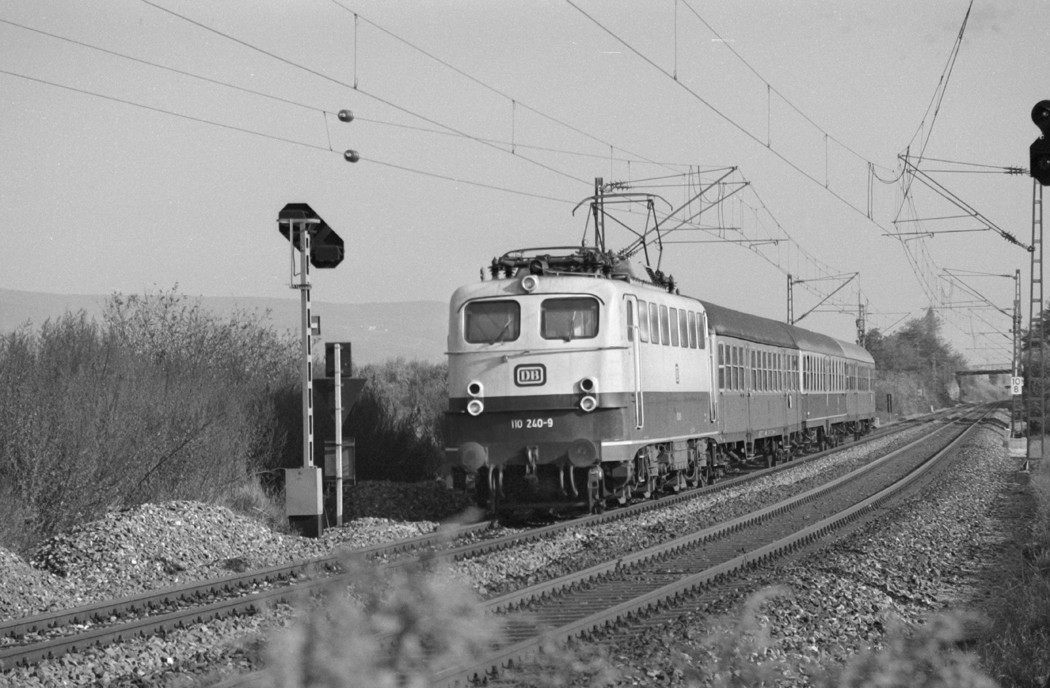 km 106,4 (Tafel und Stein) in Pflaumloch - 110 2xx mit E 3195