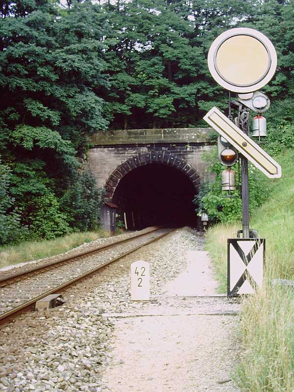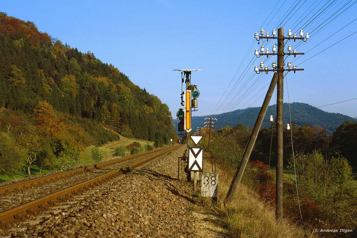 km 42,2 vor dem Westportal des Schanz-Tunnels - Einfahrvorsignal von Fichtenberg