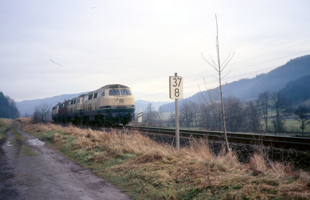 km 37,8 zwischen Murrhardt und Fornsbach - 215 104 (Bw Ulm) mit 3 Schwestern