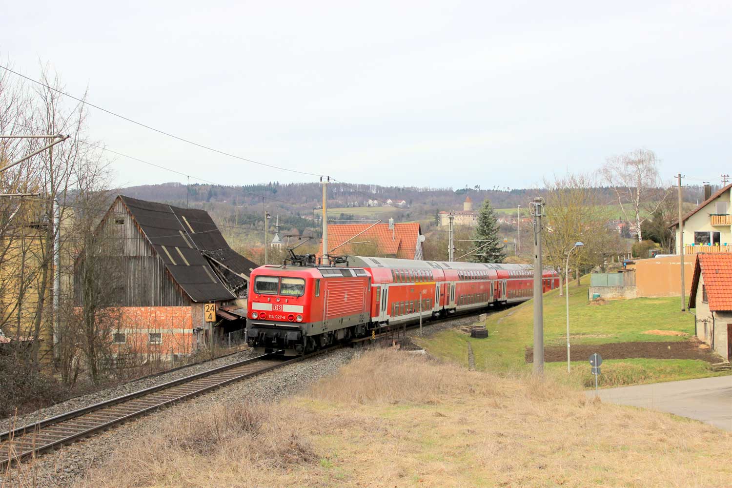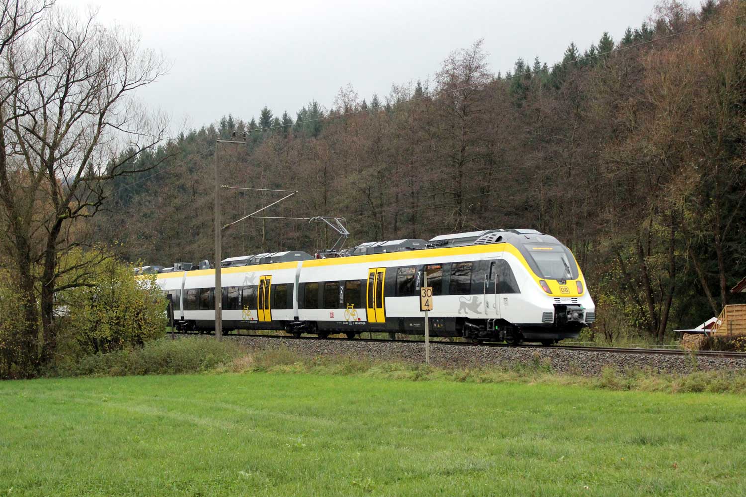 km 34,5 (Stein rechts) in Murrhardt - 114 004 mit RE19901 (Stuttgart Hbf – Nürnberg Hbf)