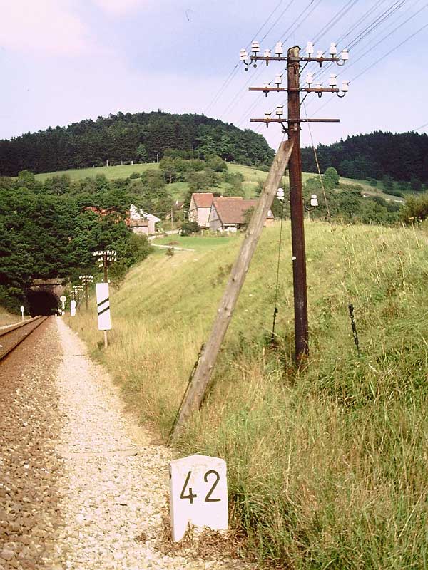 km 42,2 (Stein und Tafel) vor dem Westportal des Schanz-Tunnels