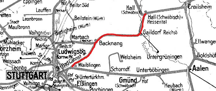 Waiblingen 0,0 - Backnang 18,52 - Schwäbisch Hall-Hessental 60,73