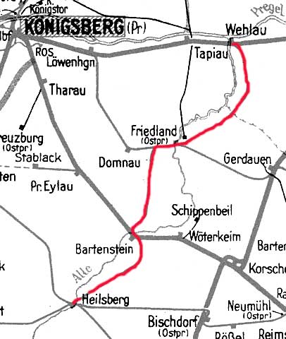 Wehlau (Ostpr) 0,0 - Friedland (Ostpr) 33,72 - Bartenstein 63,82 - Heilsberg (Ostpr) 89,62