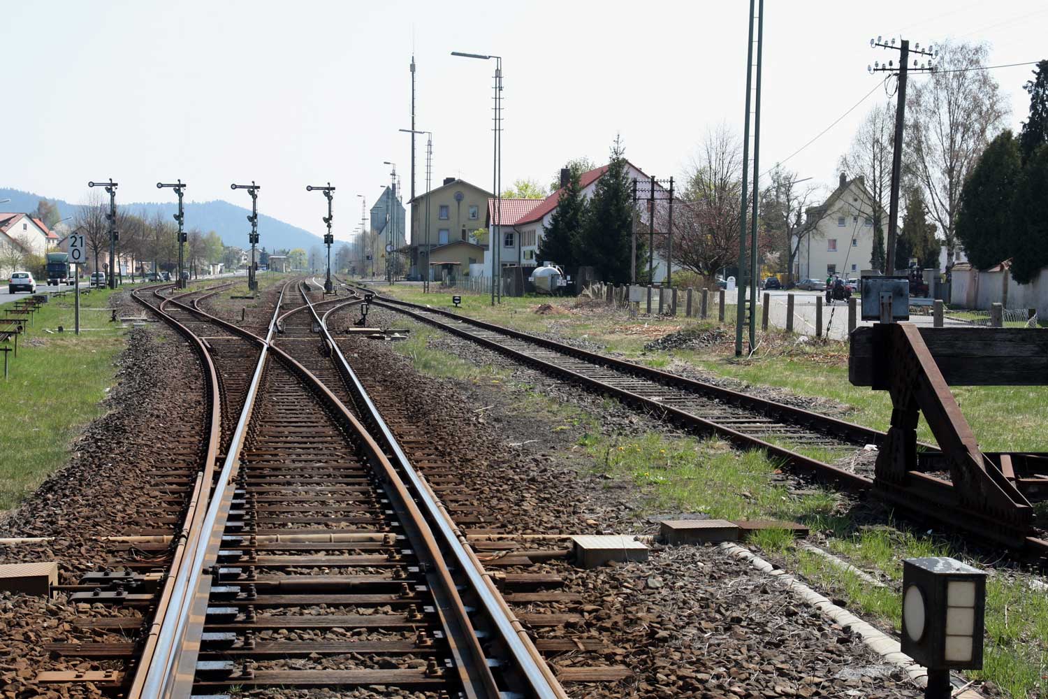 Links abgehend die Strecke (Neuenmarkt-Wirsberg 0,0) - Abzw Schlömen 2,73 - Bischoffsgrün 20,996
