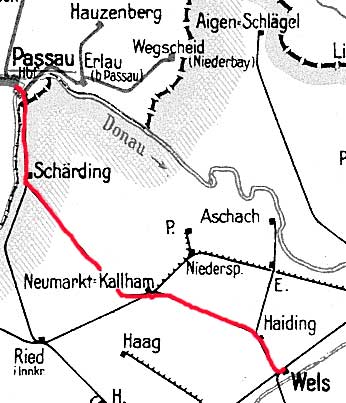 Wels -0,05 - Neumarkt-Kallham 29,72 - Schärding 67,14 - Staatsgrenze Österreich/Deutschland 79,636 - Passau-Voglau 80,00 - Passau Hbf 81,21