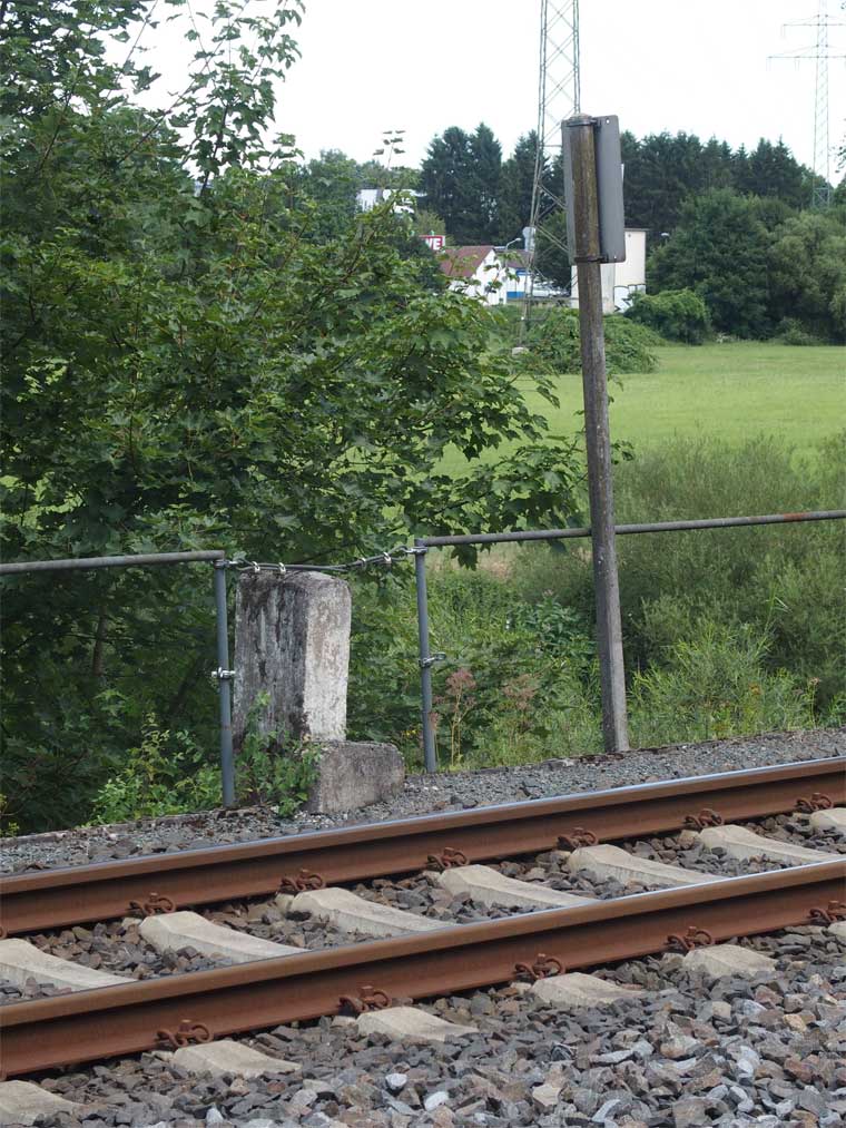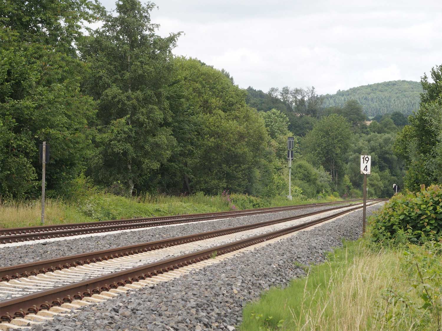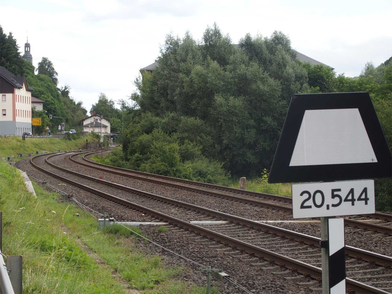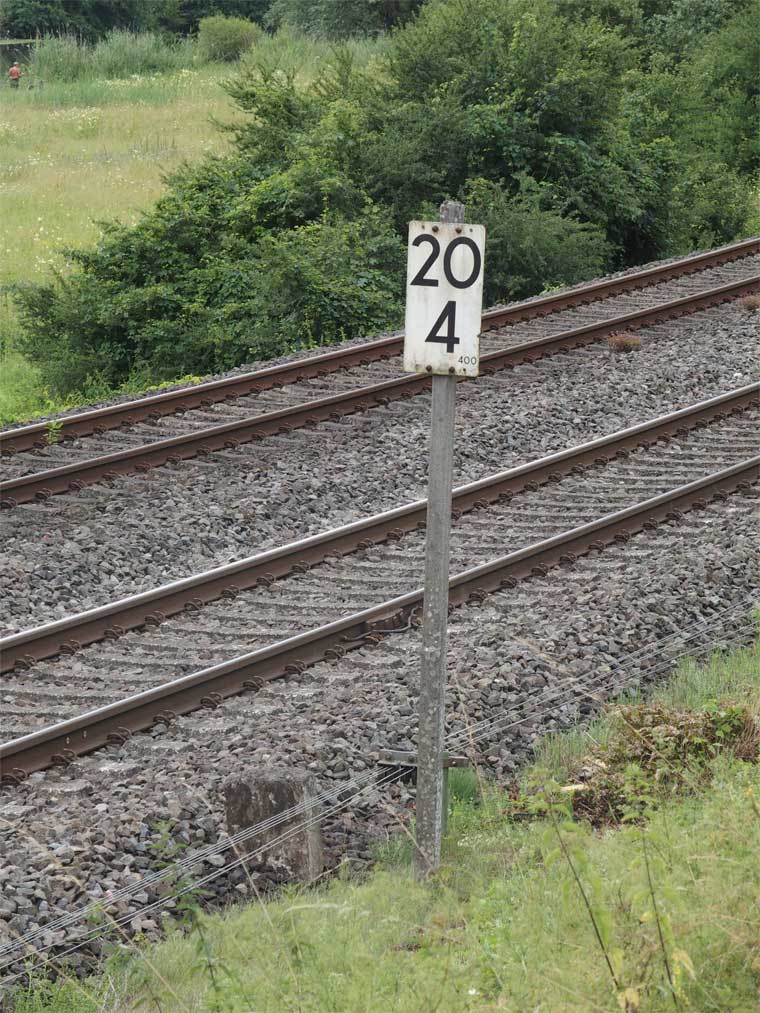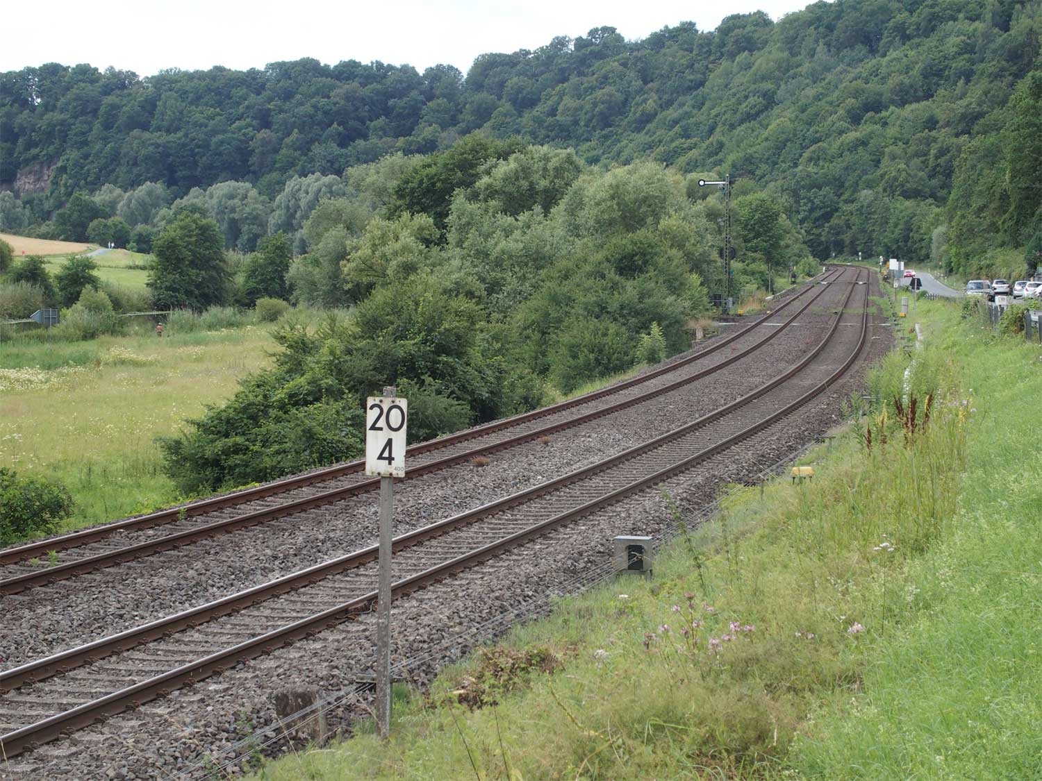km 22,4 (Tafel und Stein) in Weilburg - Stellwerk Wo - Blick Richtung Wetzlar