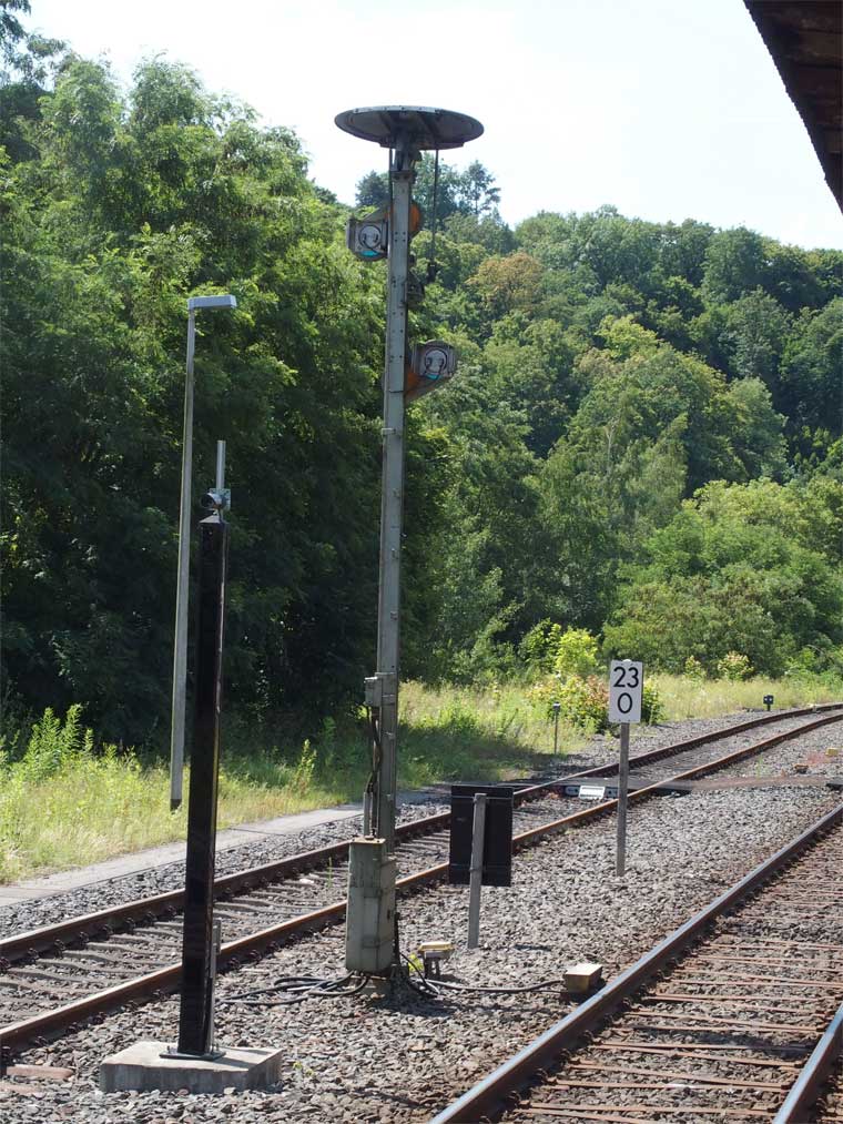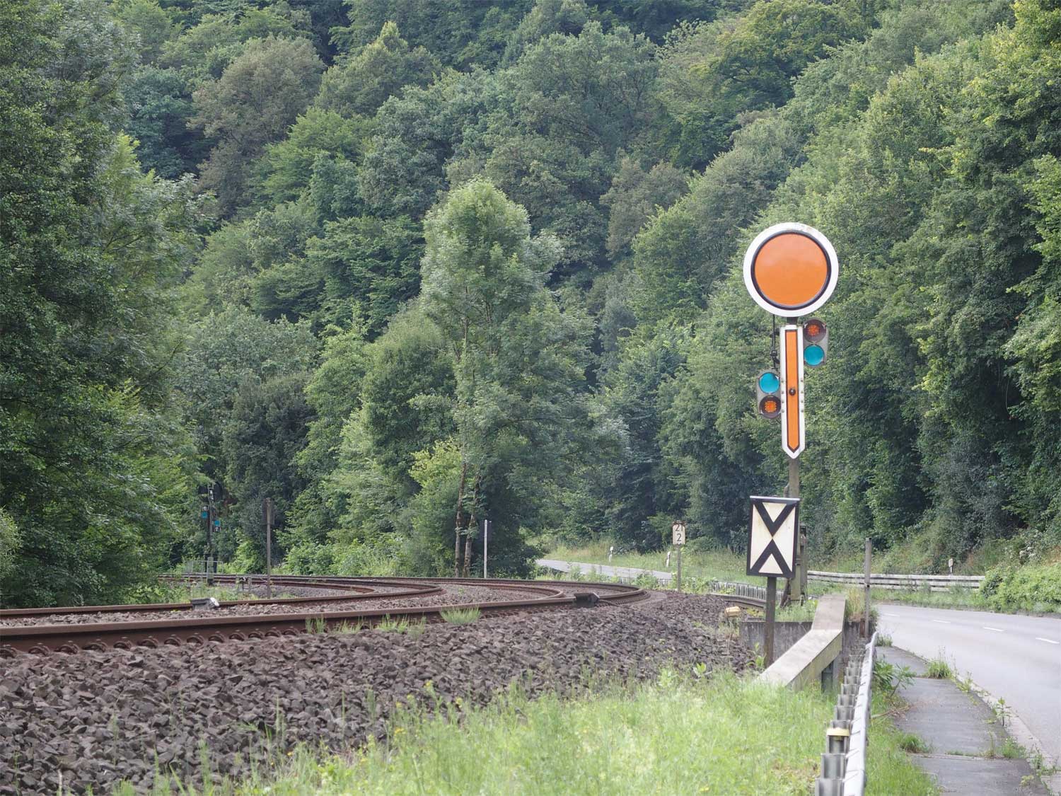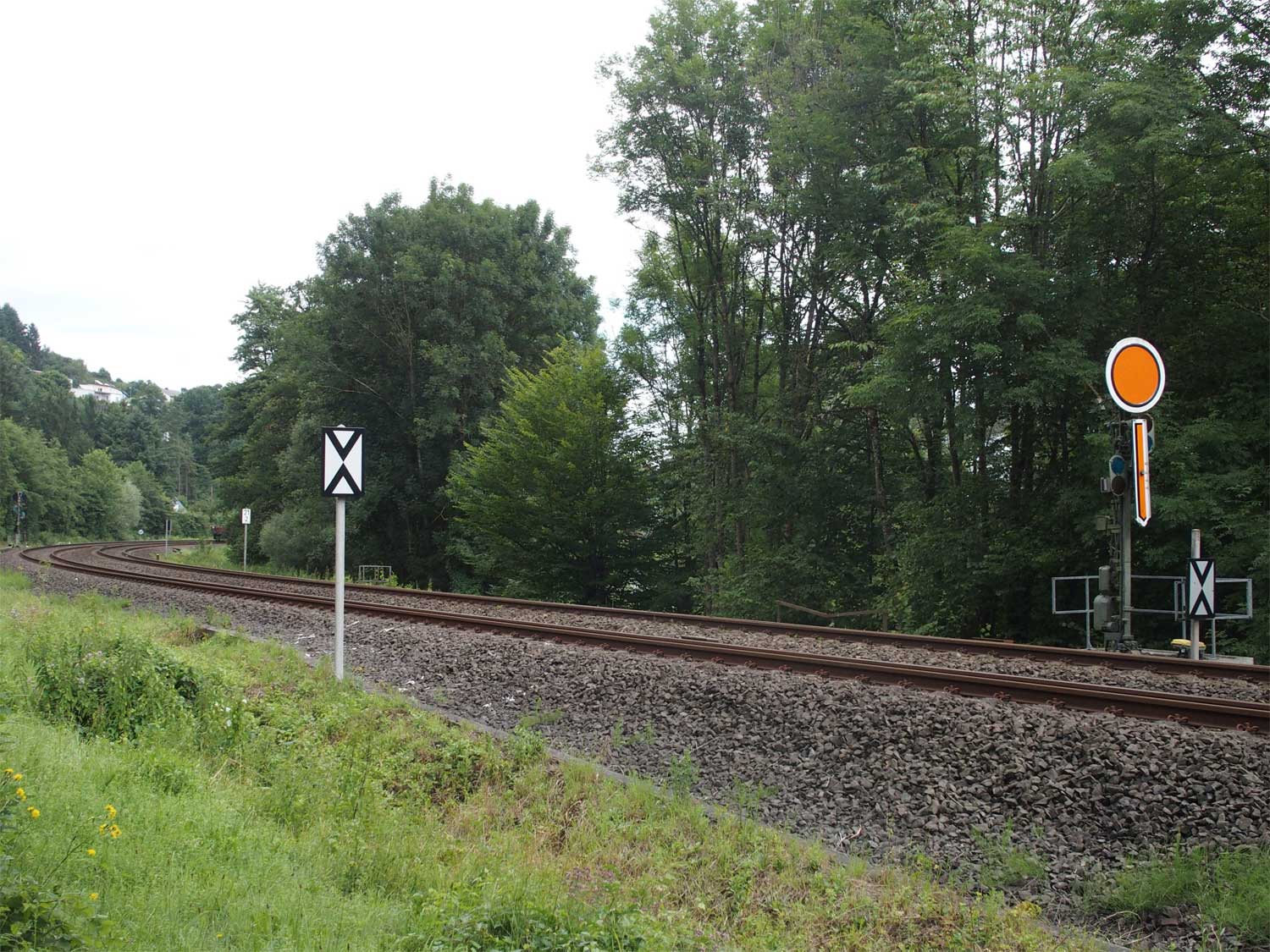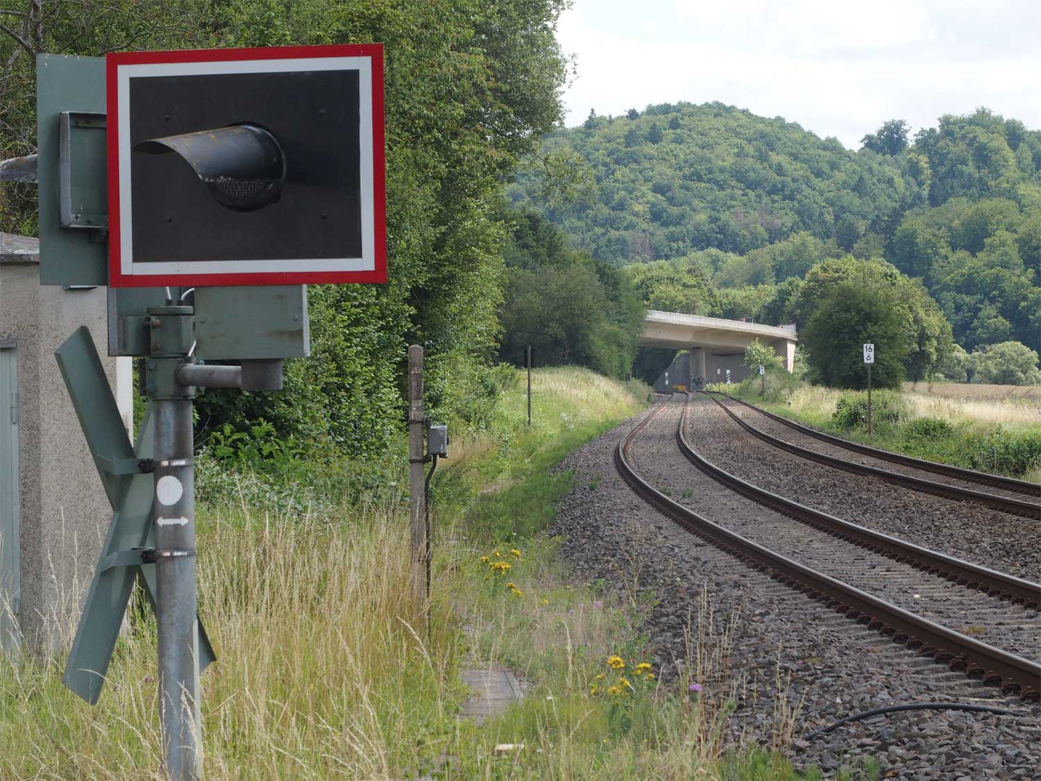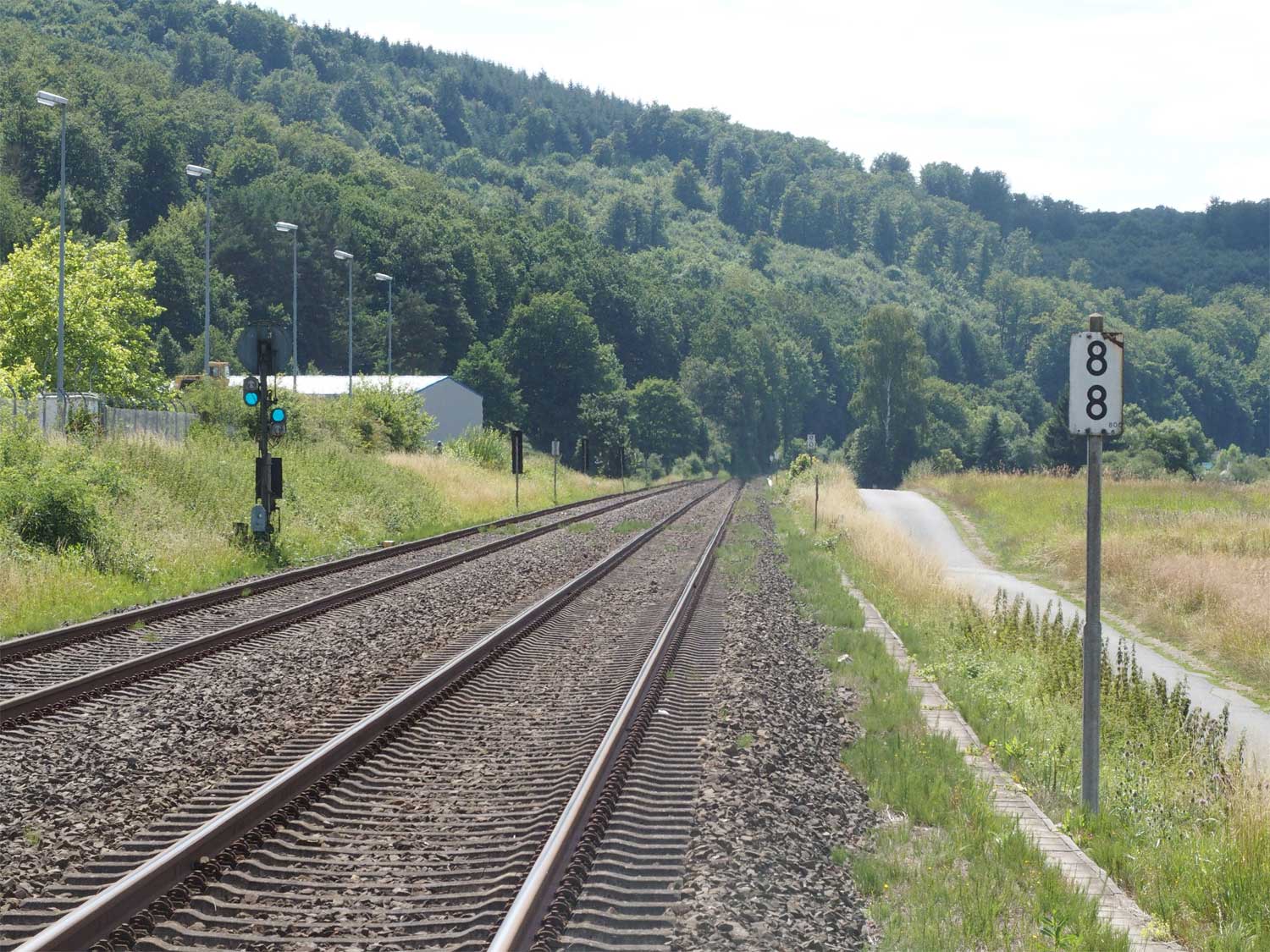 km 22,4 (Tafel und Stein) in Weilburg - Stellwerk Wo - Blick Richtung Wetzlar