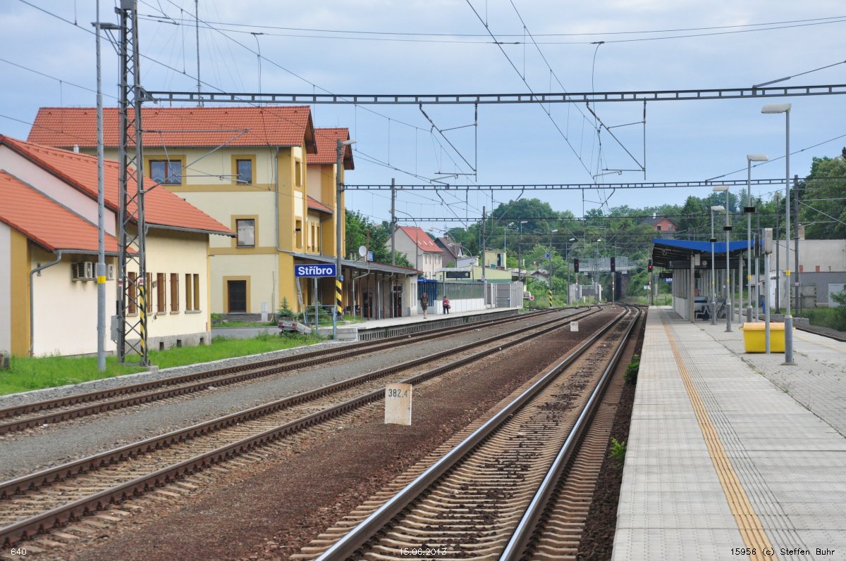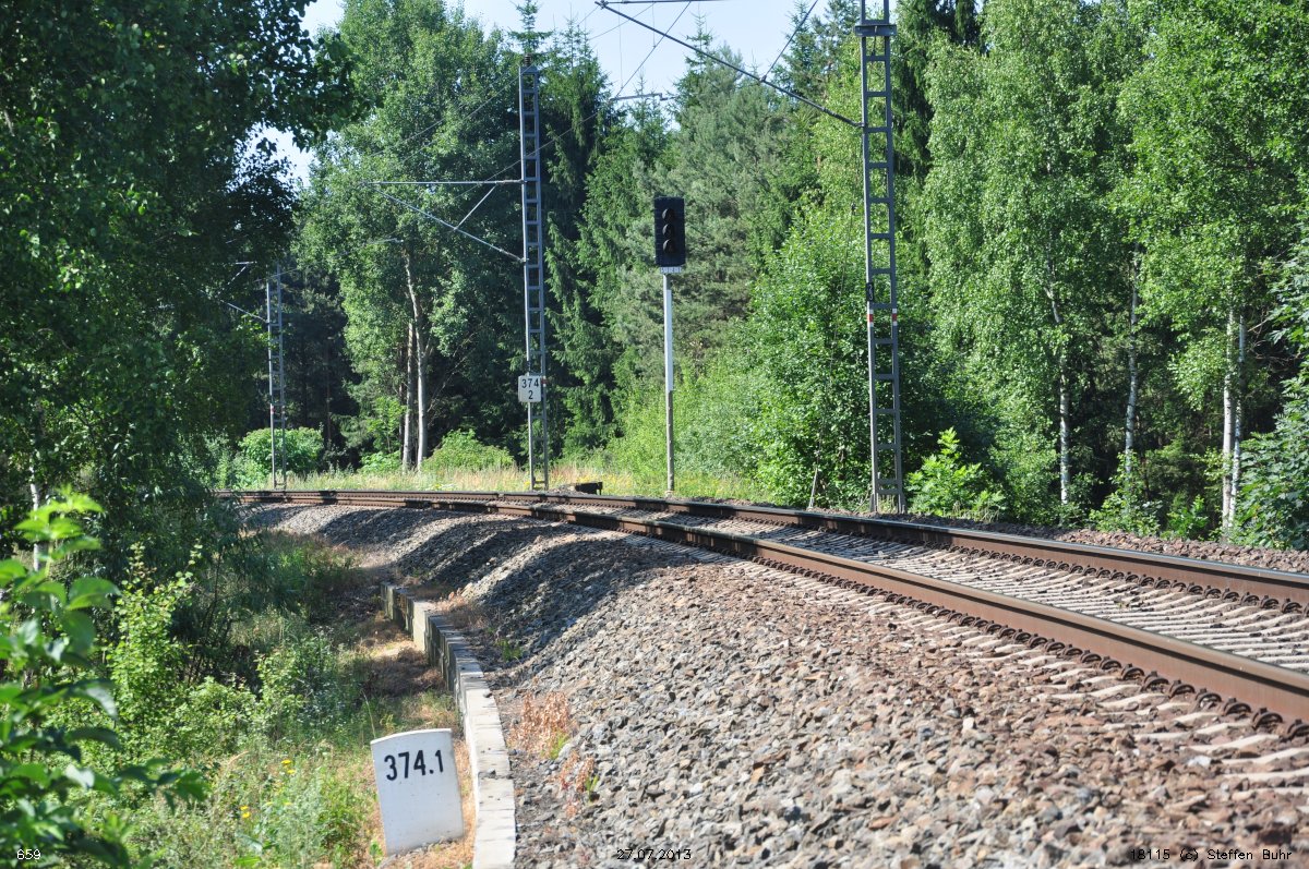 km 374,0 (Tafel) und km 374,1 (Stein) zwischen Pňovany [Neuhof (b Mies)] und Stříbro (Mies)