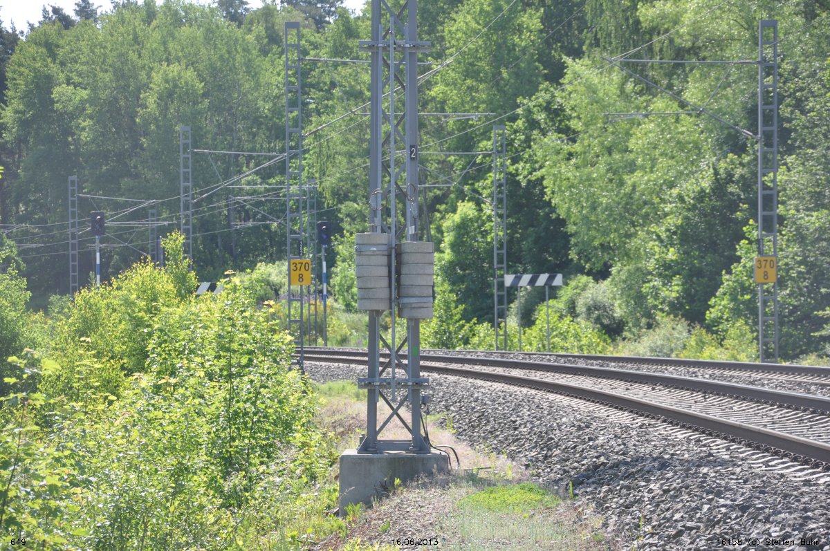km 374,1 (Stein) und km 374,2 (Tafel) zwischen Pňovany [Neuhof (b Mies)] und Stříbro (Mies)