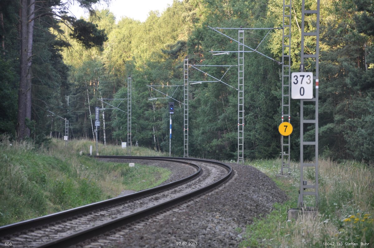 Nürnberg Hbf 0,0 - Schnabelwaid 74,96 - Marktredwitz 124,20 - Schirnding 138,30 - Grenze 140,584 - Cheb (Eger) 151,467