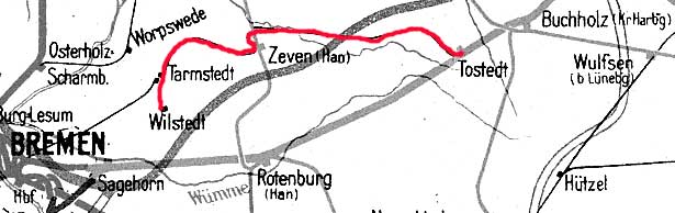Wilstedt 0,0 - Zeven Süd 25,9 - Tostedt 63,6 (Wilstedt-Zeven-Tostedter Eisenbahn/Privatbahn)