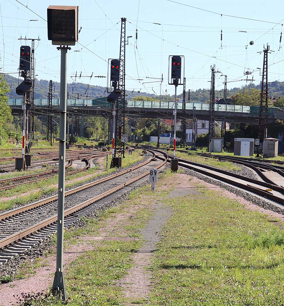 km 0,0 der Strecke Würzburg Hbf 0,0 - Würzburg Rbf 5,12 - Abzw bei Veitshöchheim | ||