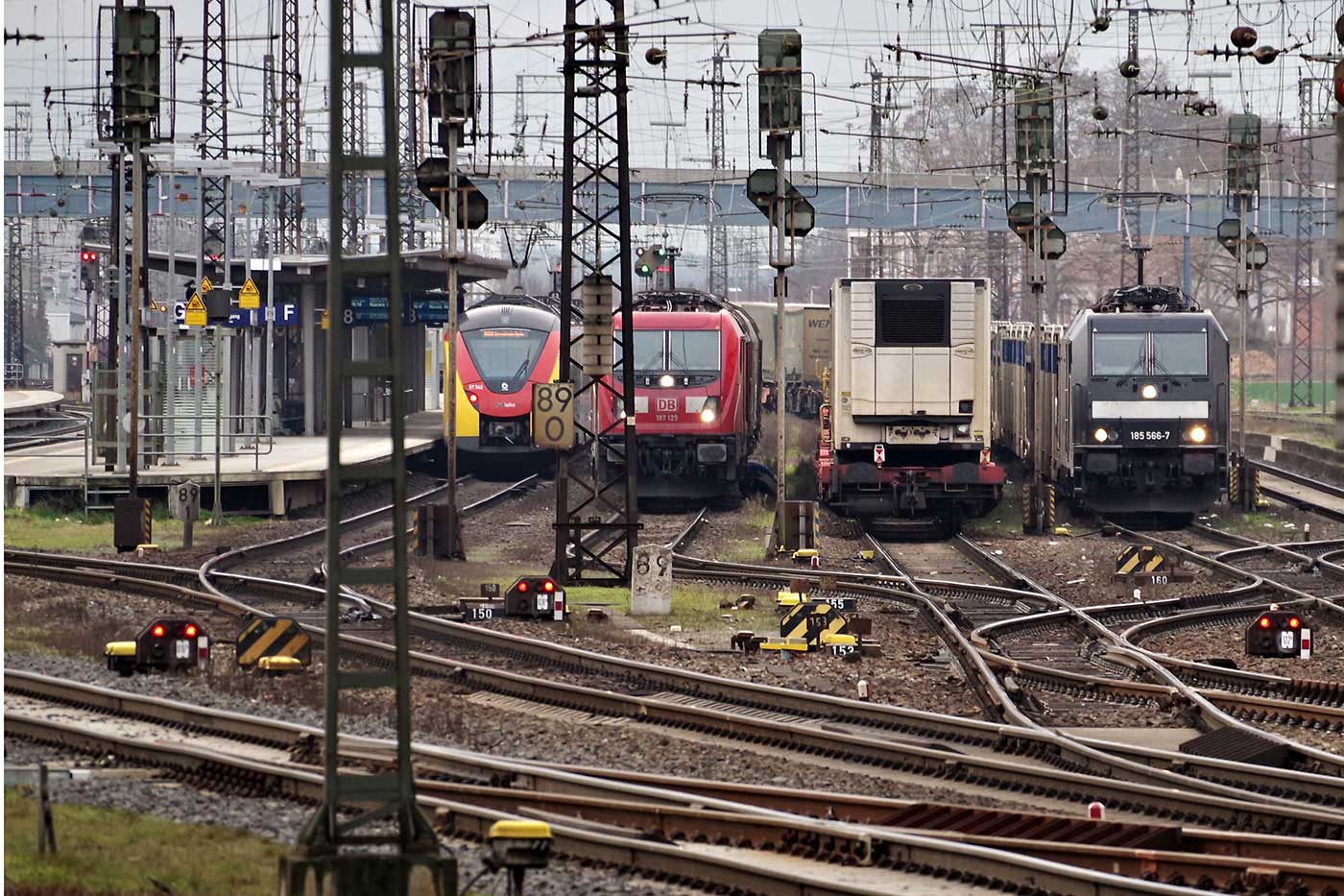 km 89,0; km 89,1 und km 89,2 in Aschaffenburg Hbf - Blick Richtung Würzburg
