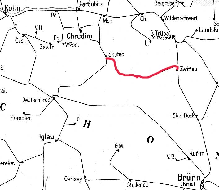 Zwittau 0,0 - Grenze Sudetenland/Protektorat Böhmen und Mähren 17,5 - Skutsch / Skuteč 52,829