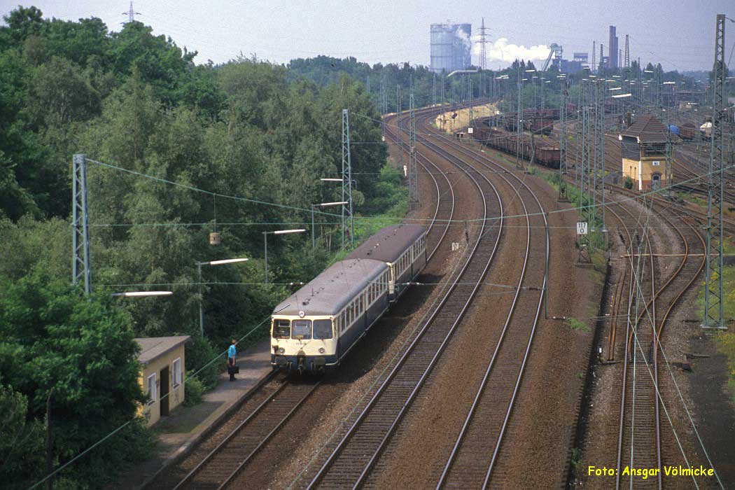 Wanne-Eickel Hbf - Dortmund Hbf - Hamm Pbf Links etwa km 20,5 der Strecke Herne 0,0 - Abzw Dortmund-Rahm 17,81 - Dortmund Hbf 23,01 am Hp Dortmund Werkstätte Foto: Ansgar Völmicke, 29.06.1990