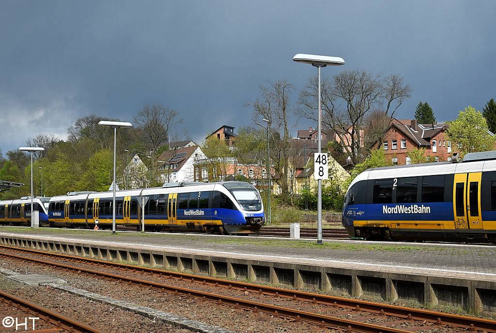 Im Hintergrund der Zug befindet sich auf der Strecke: Ottbergen 0,0 - Northeim (Han) 63,95