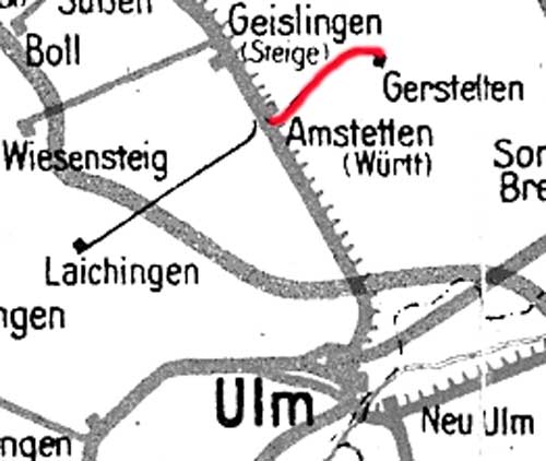 km 0,0 der Strecke Amstetten (Württ) 0,0 - Laichingen 18,96 (Spurweite 1000 mm) | ||