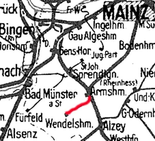 km 16,67 der Strecke Langmeil (Pfalz) 0,0 - Marnheim 14,14 - Streckenunterbrechung - Kirchheimbolanden 19,55 - ehemalige Landesgrenze Pfalz/Hessen km 25,73 = km 0,0 - Alzey 8,98 - Armsheim 16,67 - Mainz Hbf 50,07