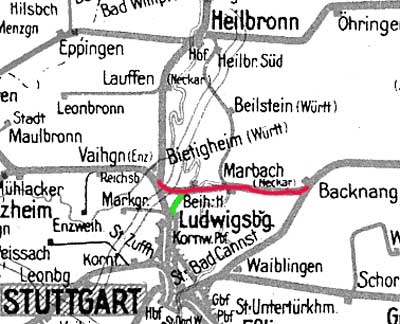 hergestellt. Die Kilometrierung wurde nach Ludwigsburg weitergeführt. |