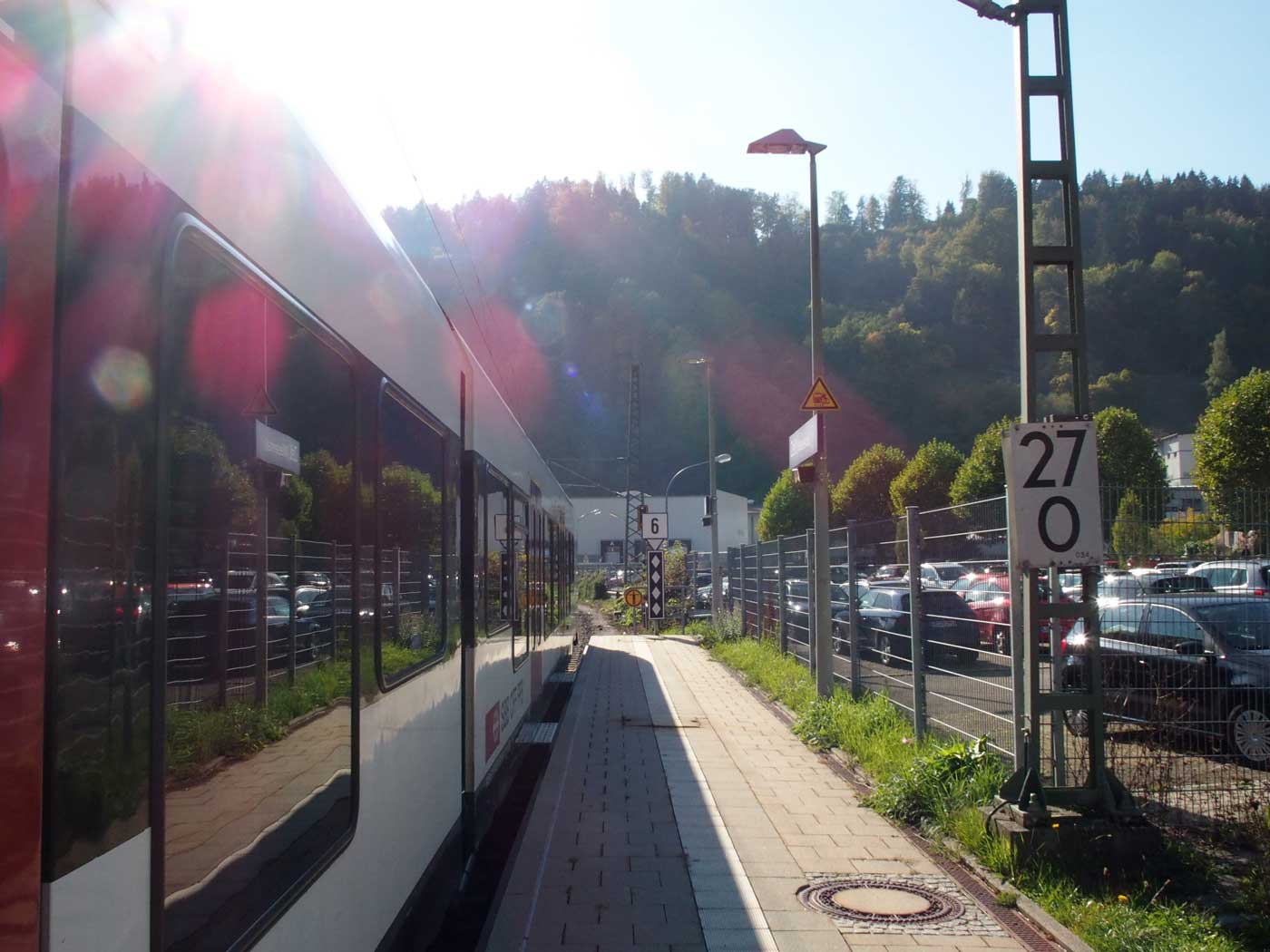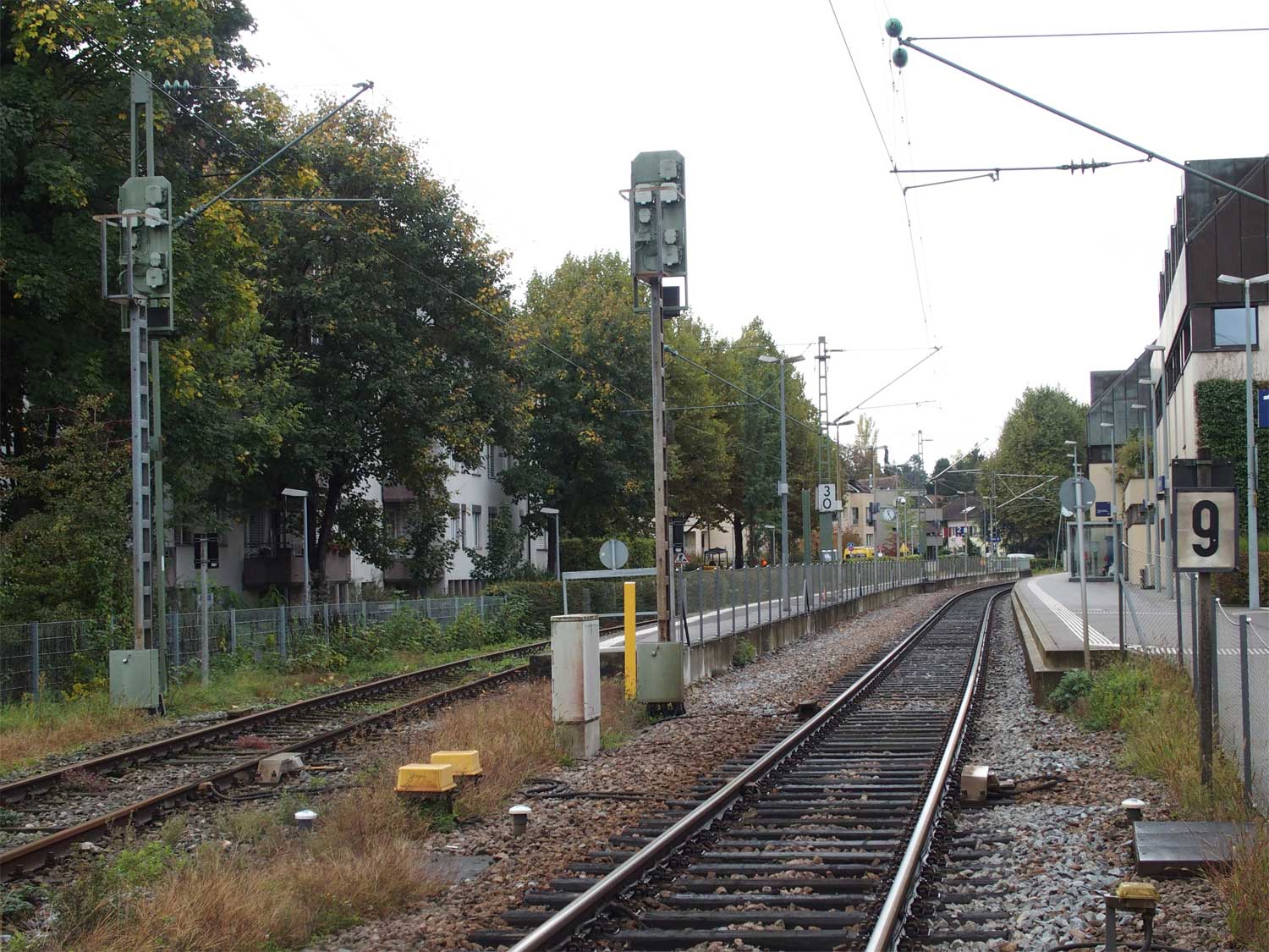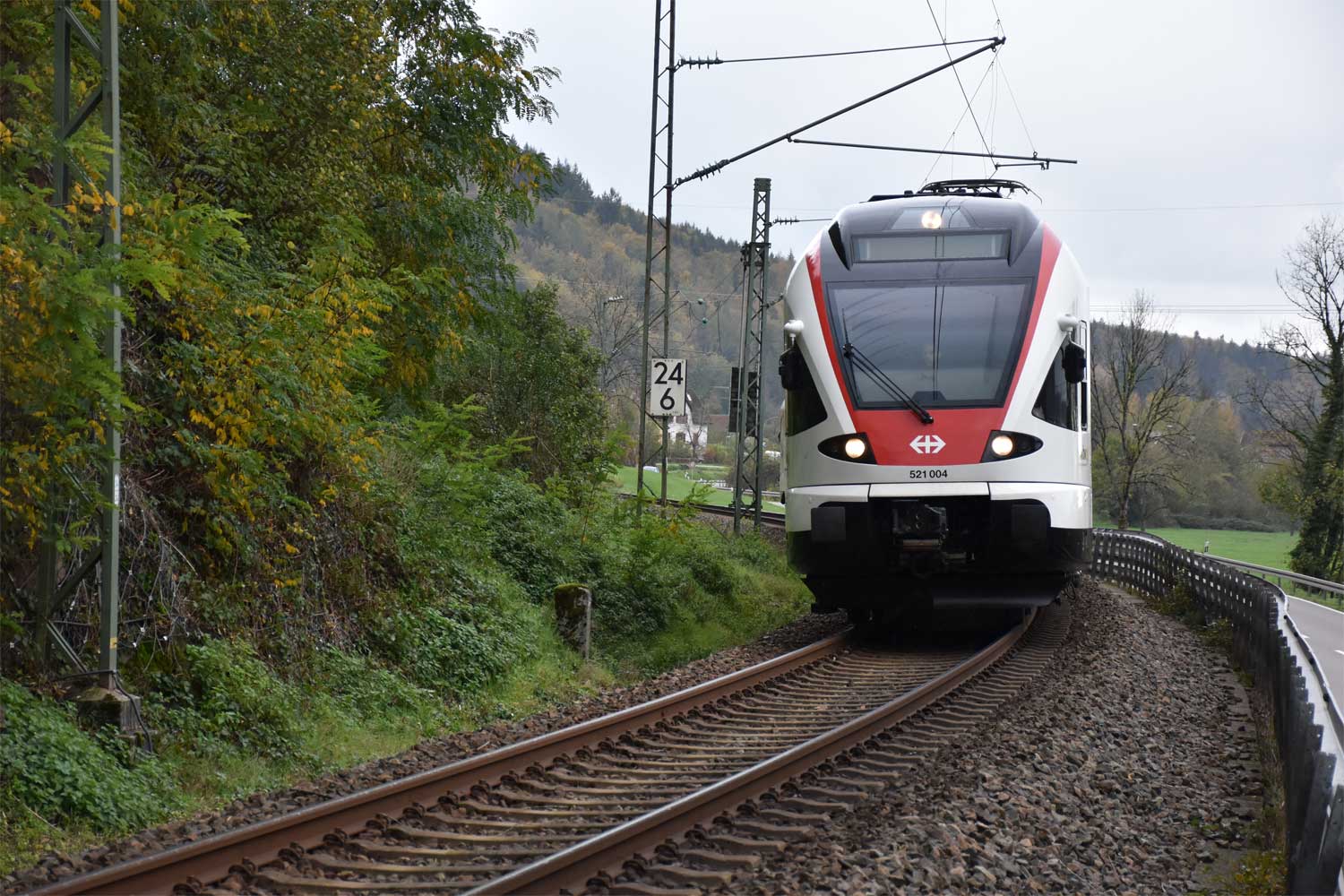 Bad Säckingen 19,67 km 302,38 der Strecke Mannheim Hbf - Heidelberg Hbf - Karlsruhe Hbf - Basel Bad Bf - Singen (Hohentwiel) - Konstanz - Grenze Deutschland/Schweiz - (Kreuzlingen)