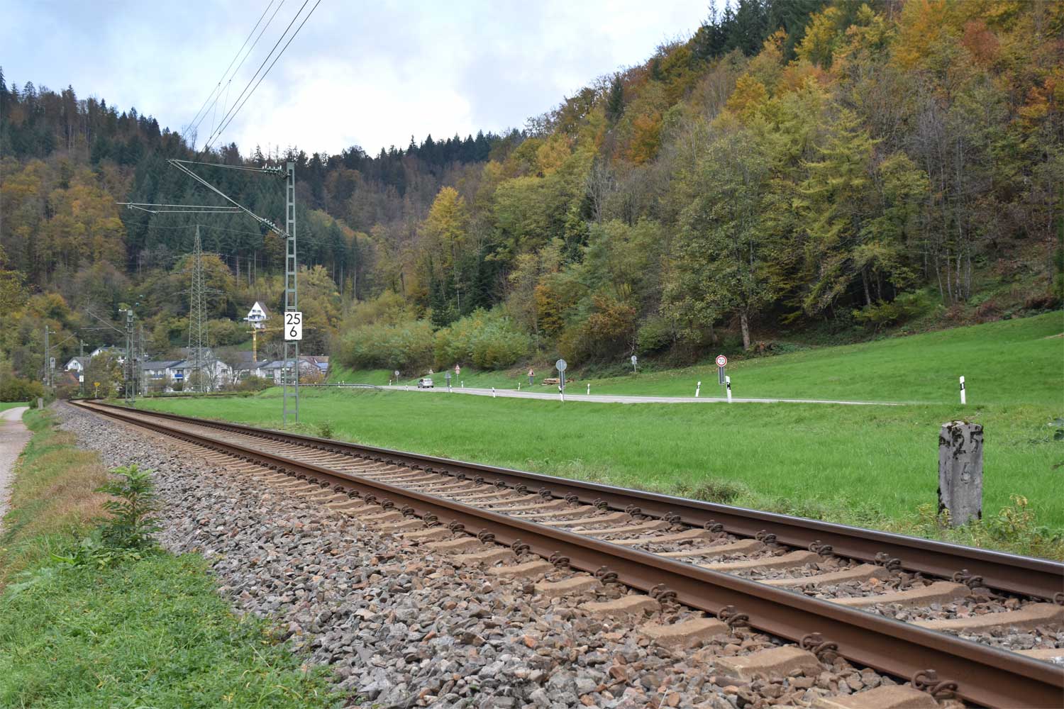 km 27,0 in Zell - Blick Richtung Basel Bad Bf