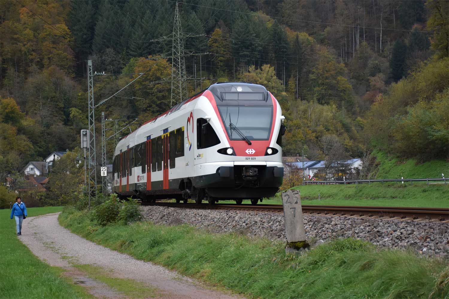 485 auf der Strecke Basel Bad Bf 0,0 - Lörrach 6,52 - Zell (Wiesental) 27,15 - (Streckenende 27,270)