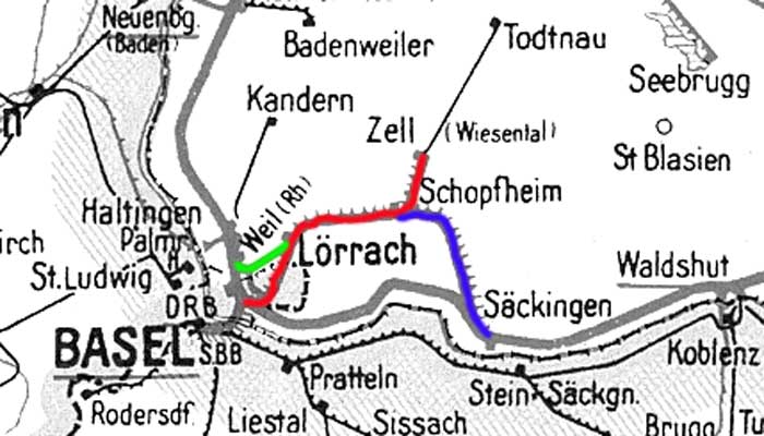 Basel Bad Bf 0,0 - Grenze Schweiz/Deutschland 4,316 - Lörrach 6,52 - Zell (Wiesental) 27,15 - (Streckenende 27,270)