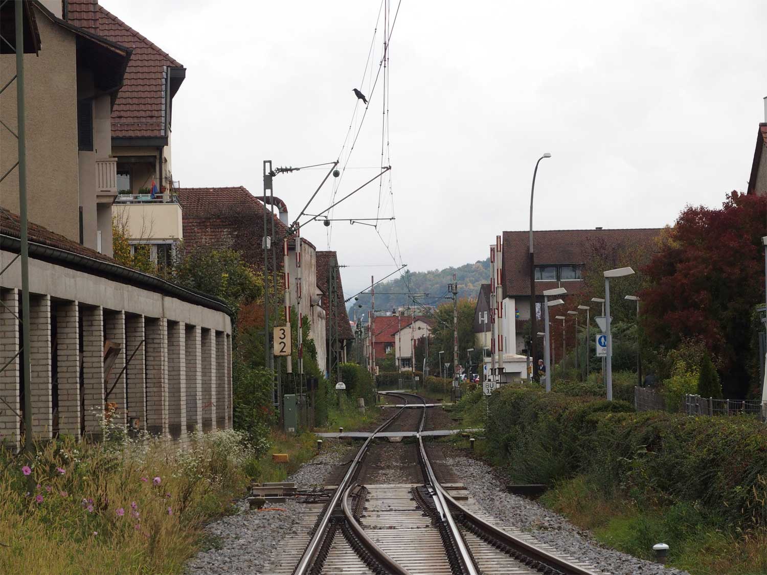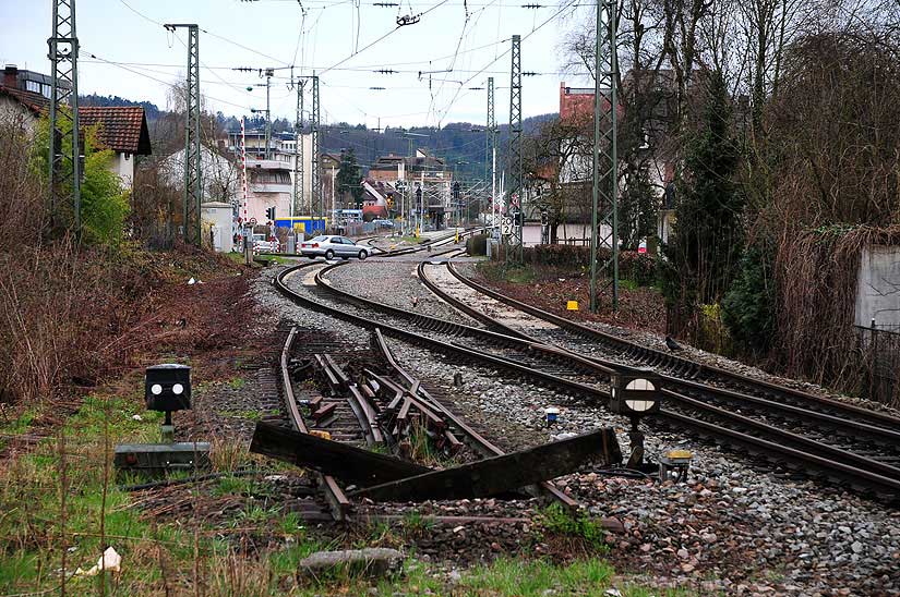 Links oben das Gleis der Strecke Mannheim Hbf - Basel Bad Bf - Konstanz