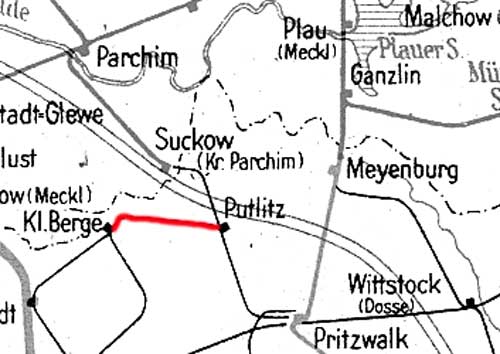 Putlitz | 14,50 | km 17,05 der Strecke Pritzwalk 0,0 - Putlitz 17,05 - Suckow (Kr Parchim) 28,88 = km 19,42 - Parchim 0,0 |
