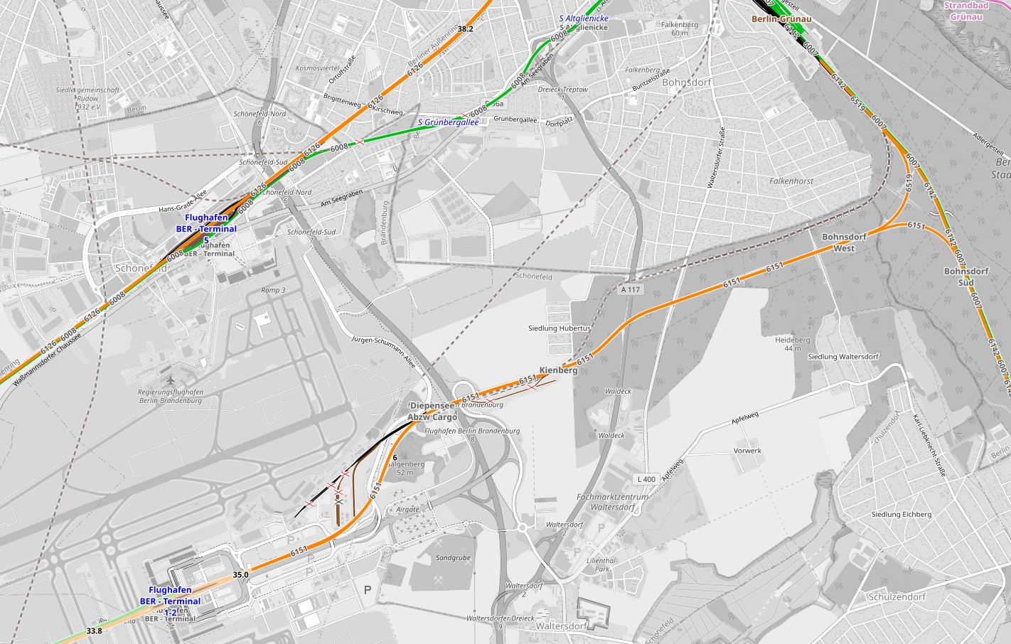 Streckenast Abzw Glasower Damm Ost 27,86 - Abzw Selchow Süd 30,79 - Berlin Flughafen BER 34,50 - Abzw Bohnsdorf West 40,85 - Abzw Bohnsdorf Süd 42,08 (6151)