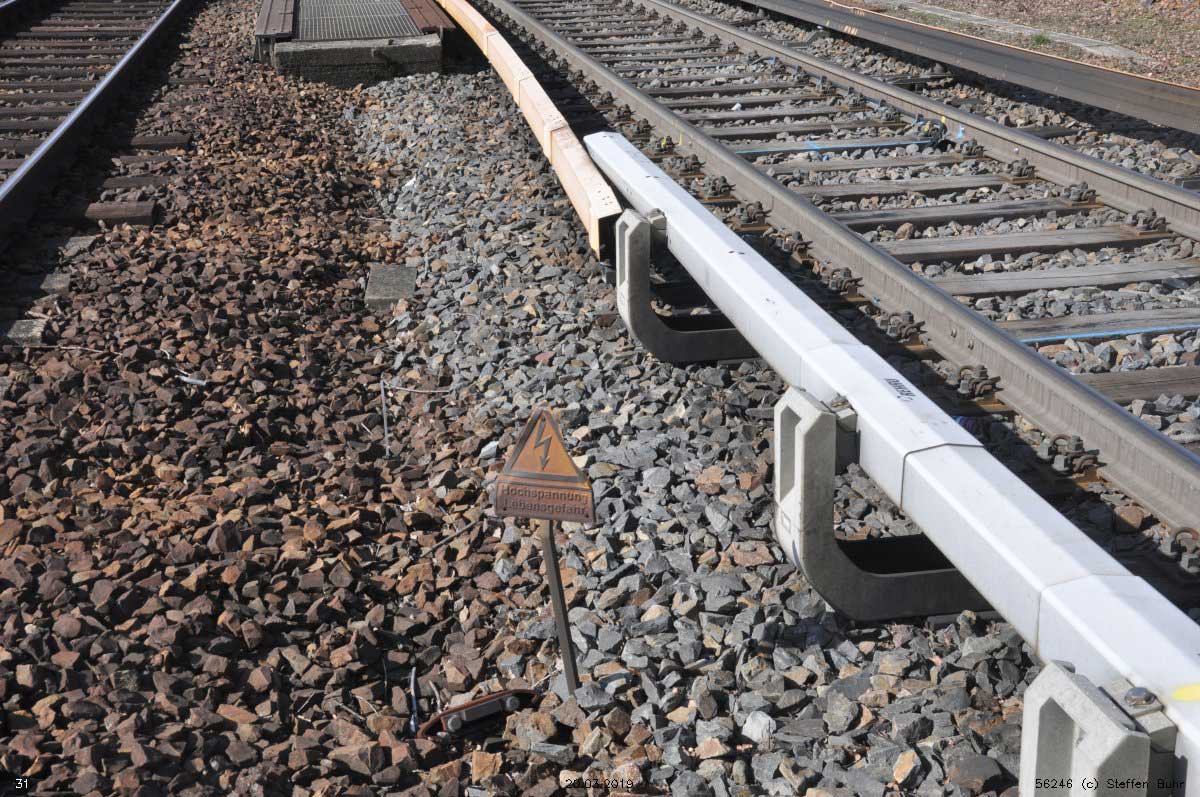 Übergang von der normalen Stromschiene zur Brückenleitschiene