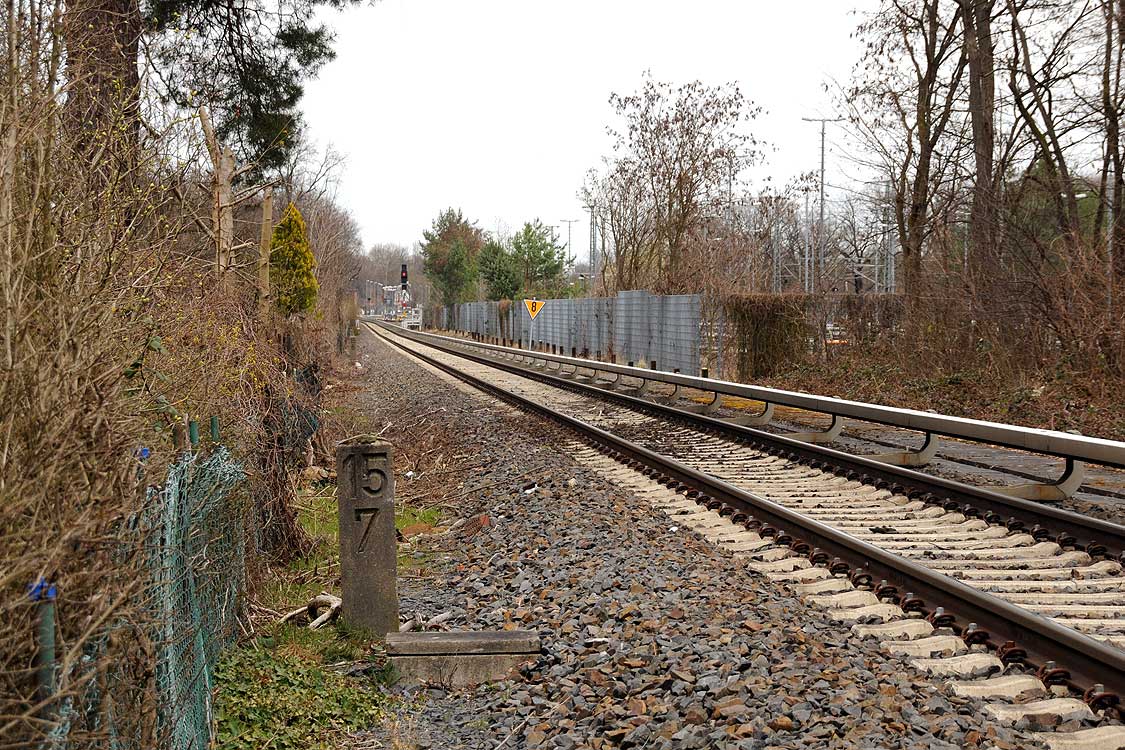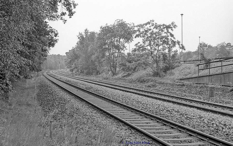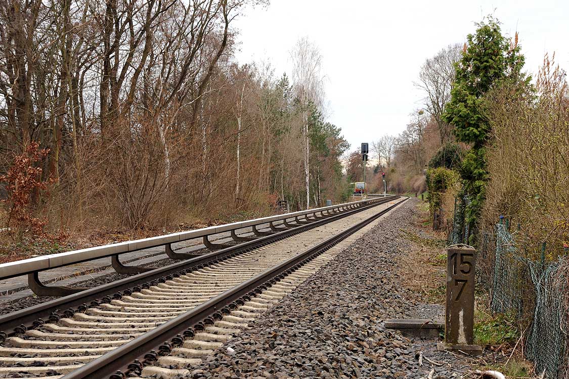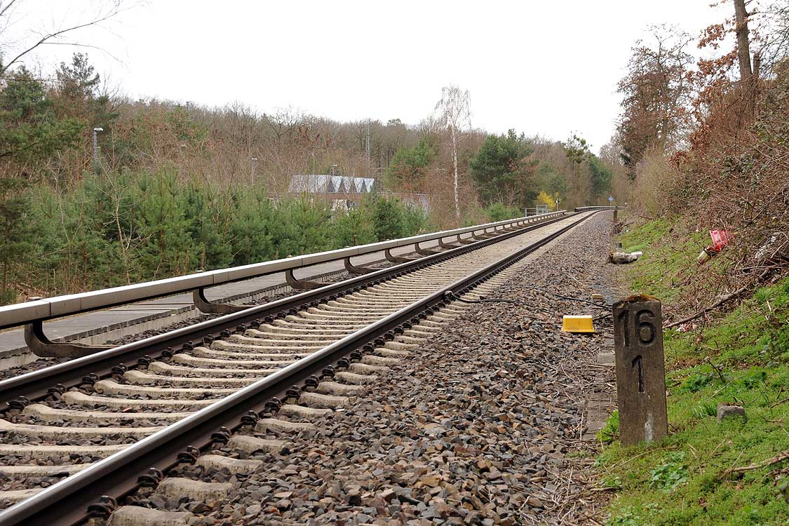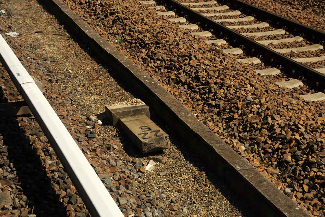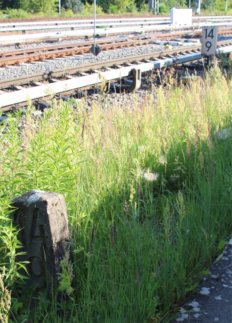 Vor dem Stellwerk Pdo ist noch der Stein km 25,3 zu erkennen.