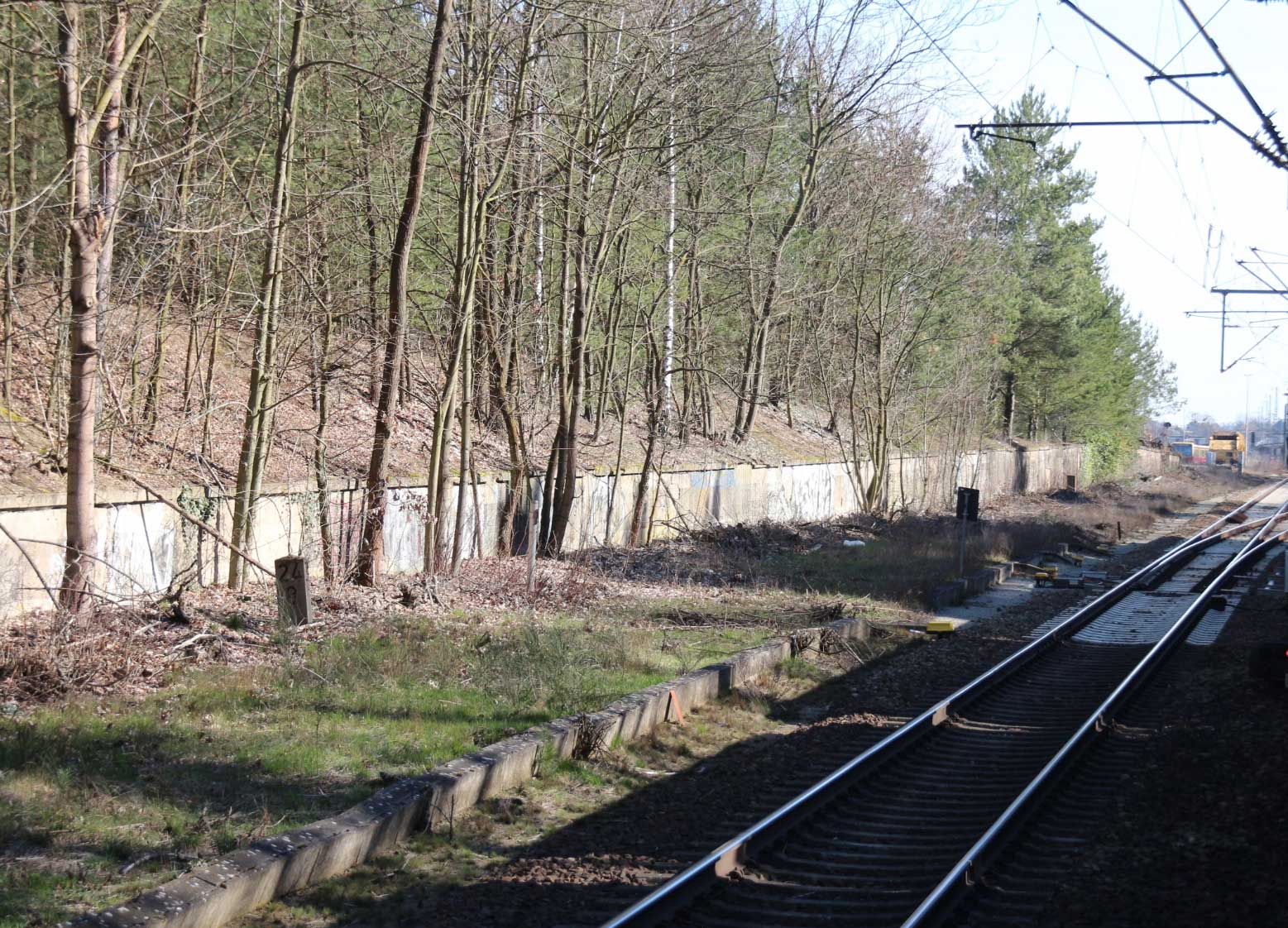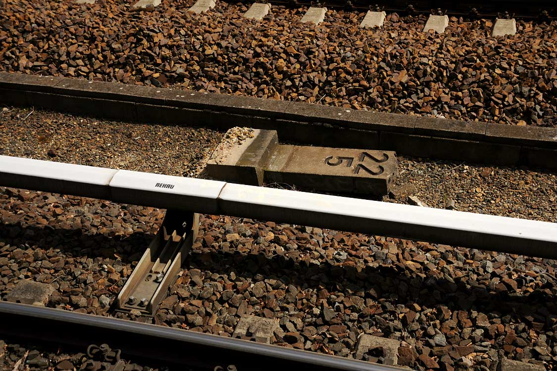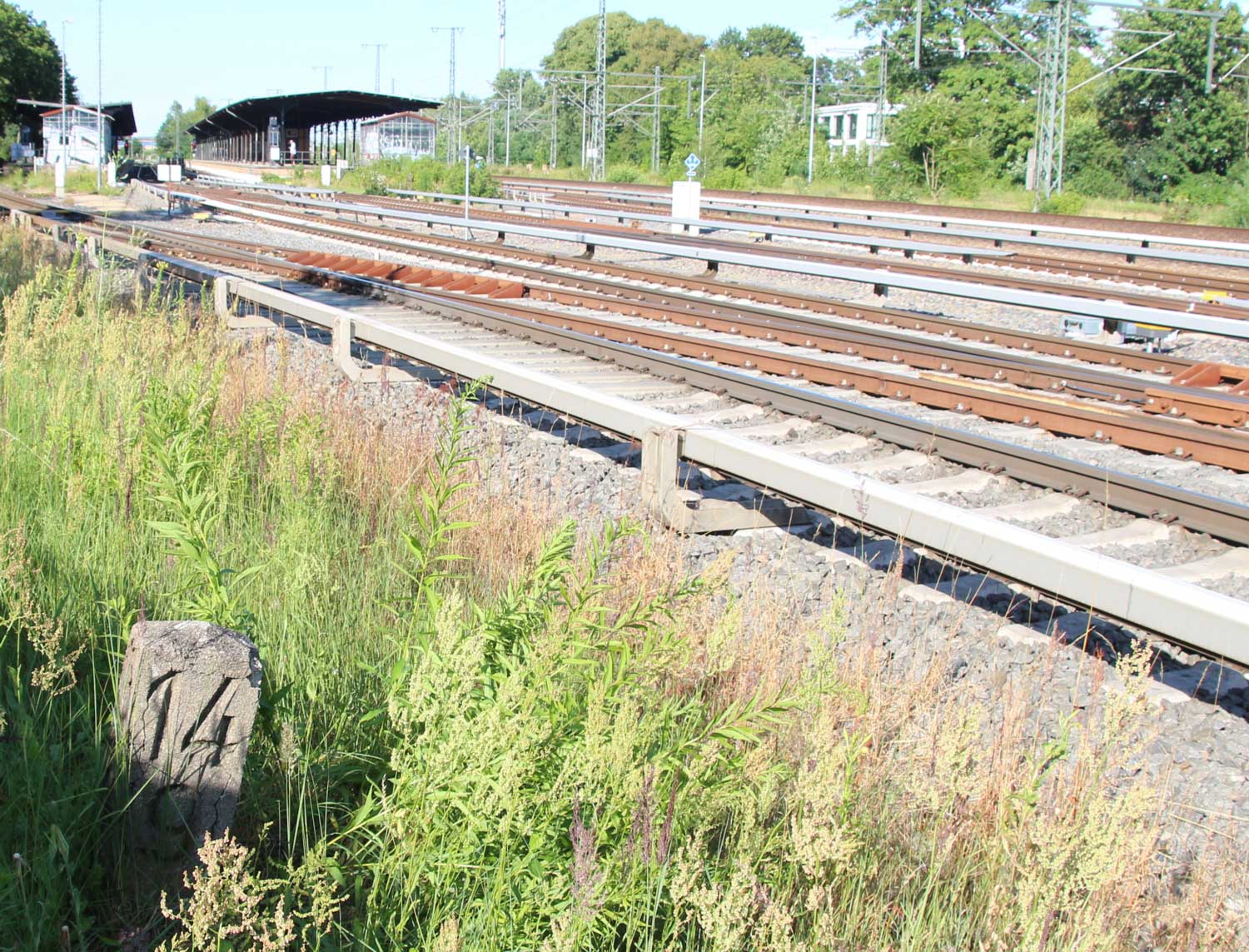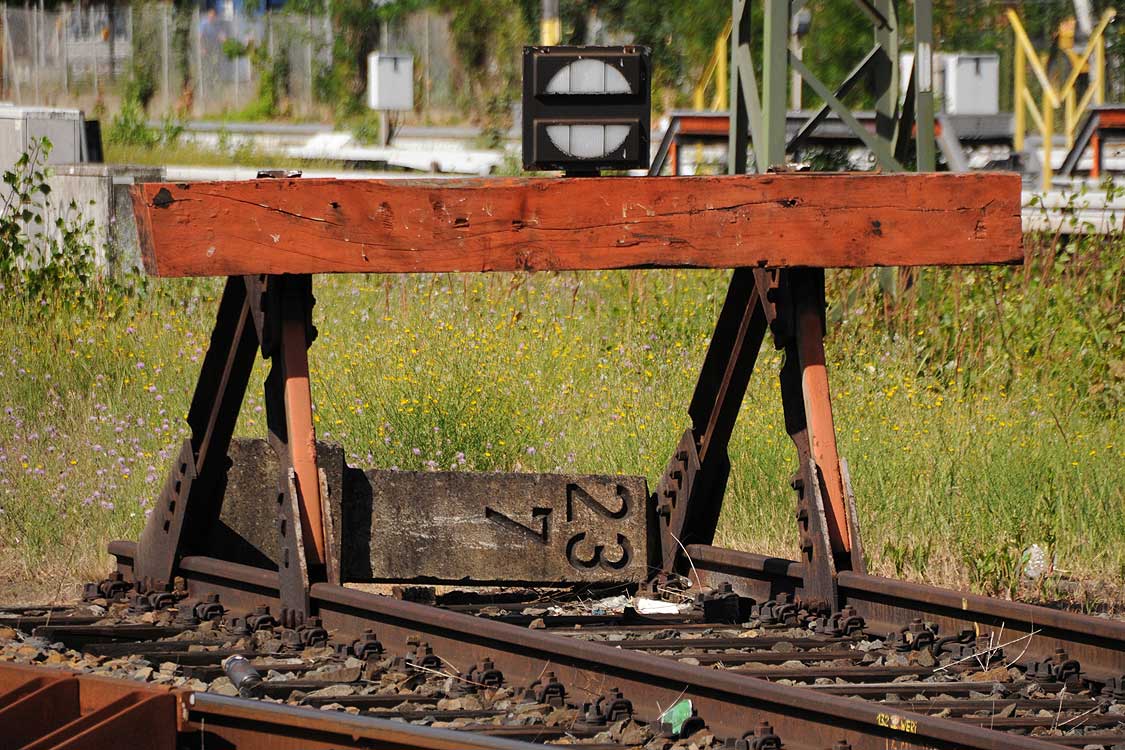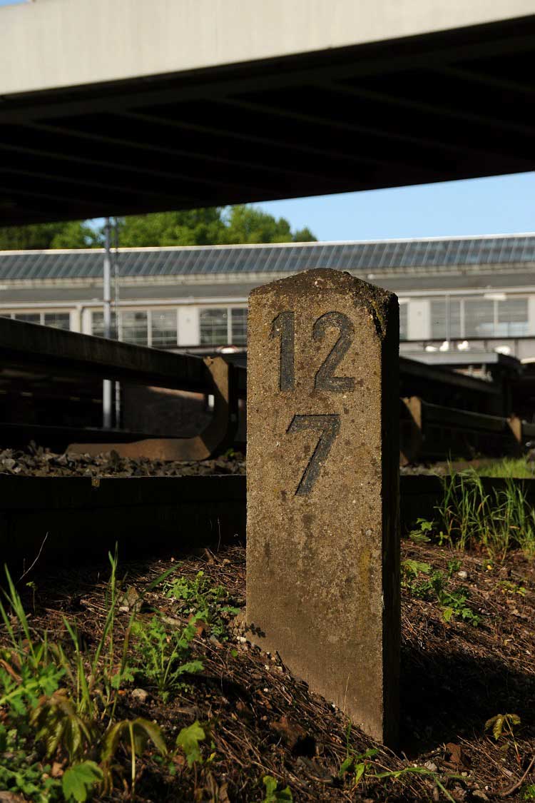 Vor dem Stellwerk Pdo ist noch der Stein km 25,3 zu erkennen.