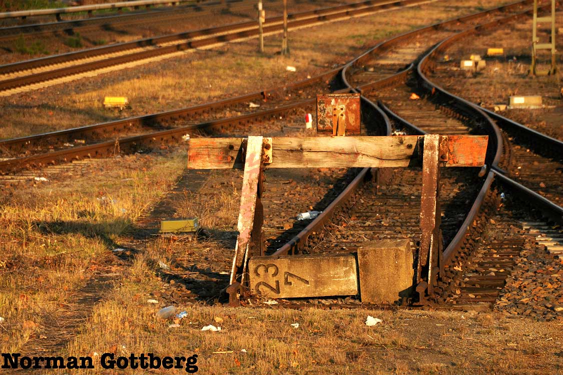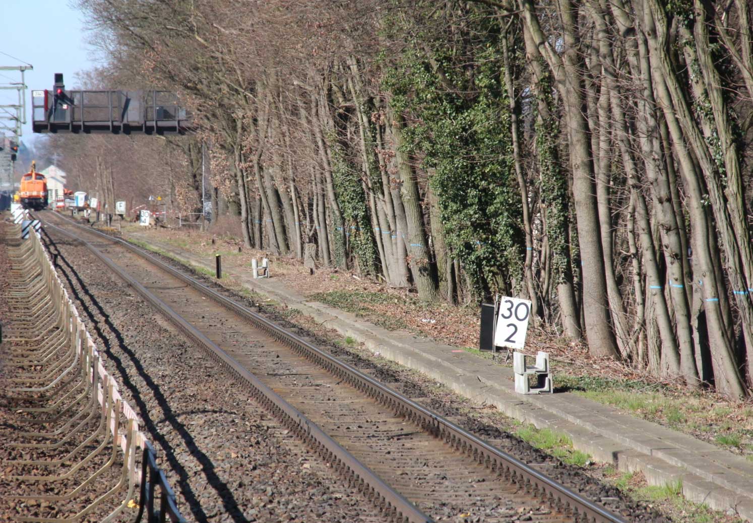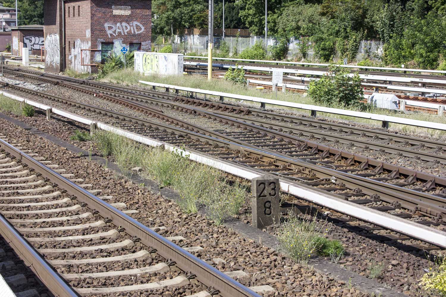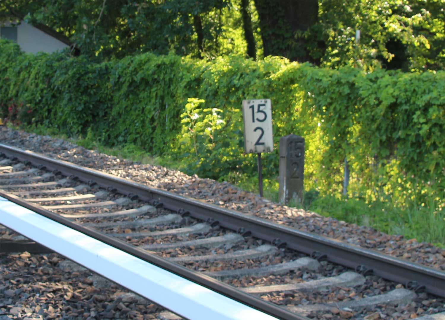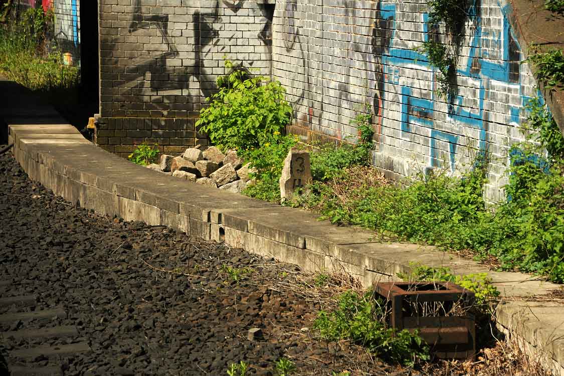 Vor dem Stellwerk Pdo ist noch der Stein km 25,3 zu erkennen.