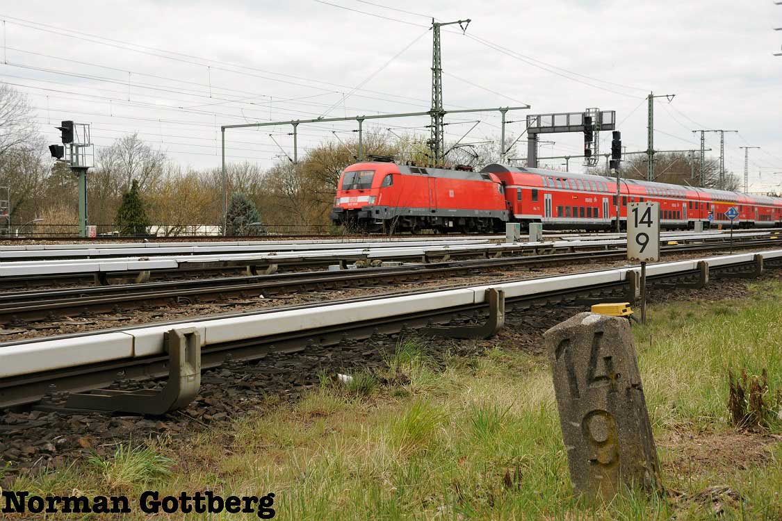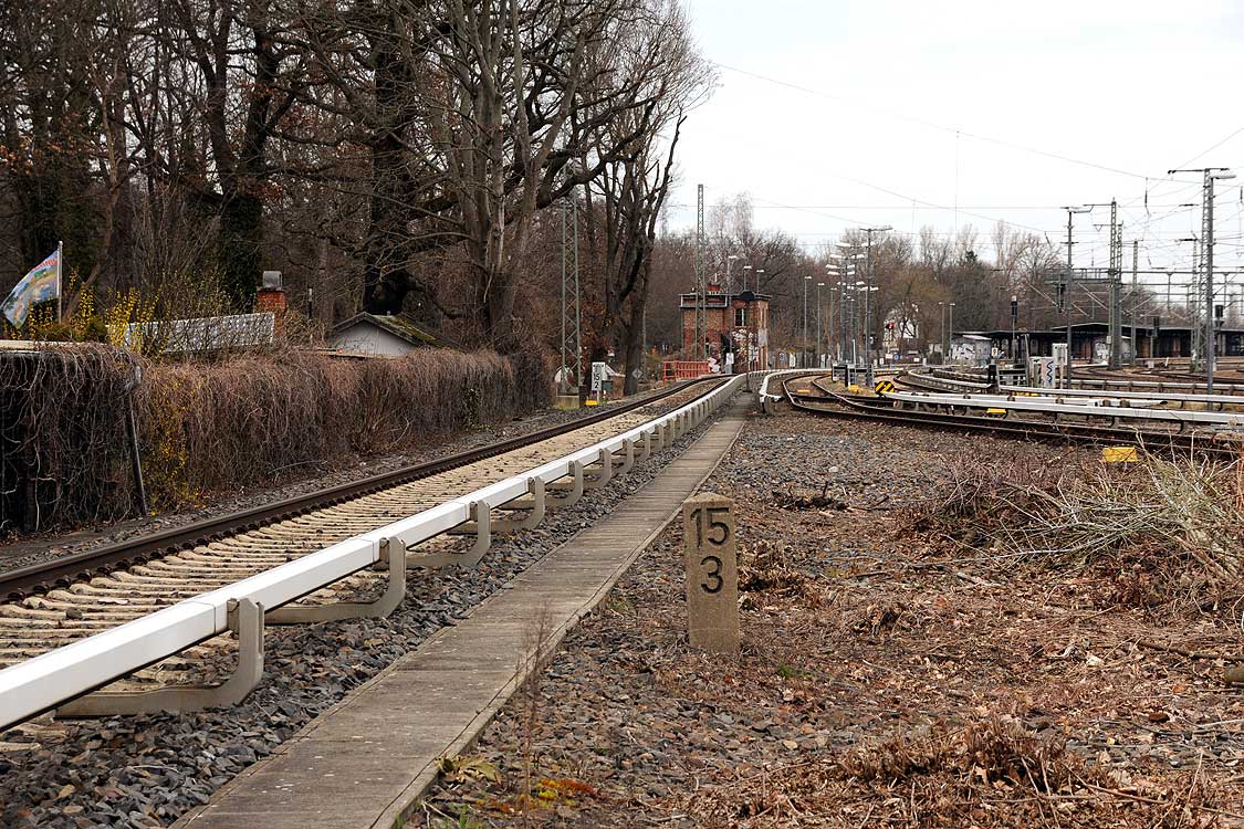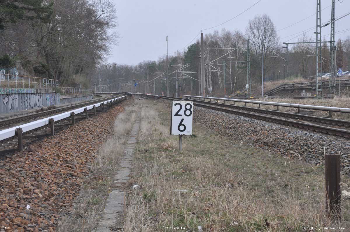 Pbf. Die Kilometrierung wurde bis nach Potsdam weitergeführt. Ebenso entstanden abzweigende Strecken mit weiterlaufender Kilometrieung. Die Kilometrierung umfasst die S-Bahngleise und die Fernbahngleise. |