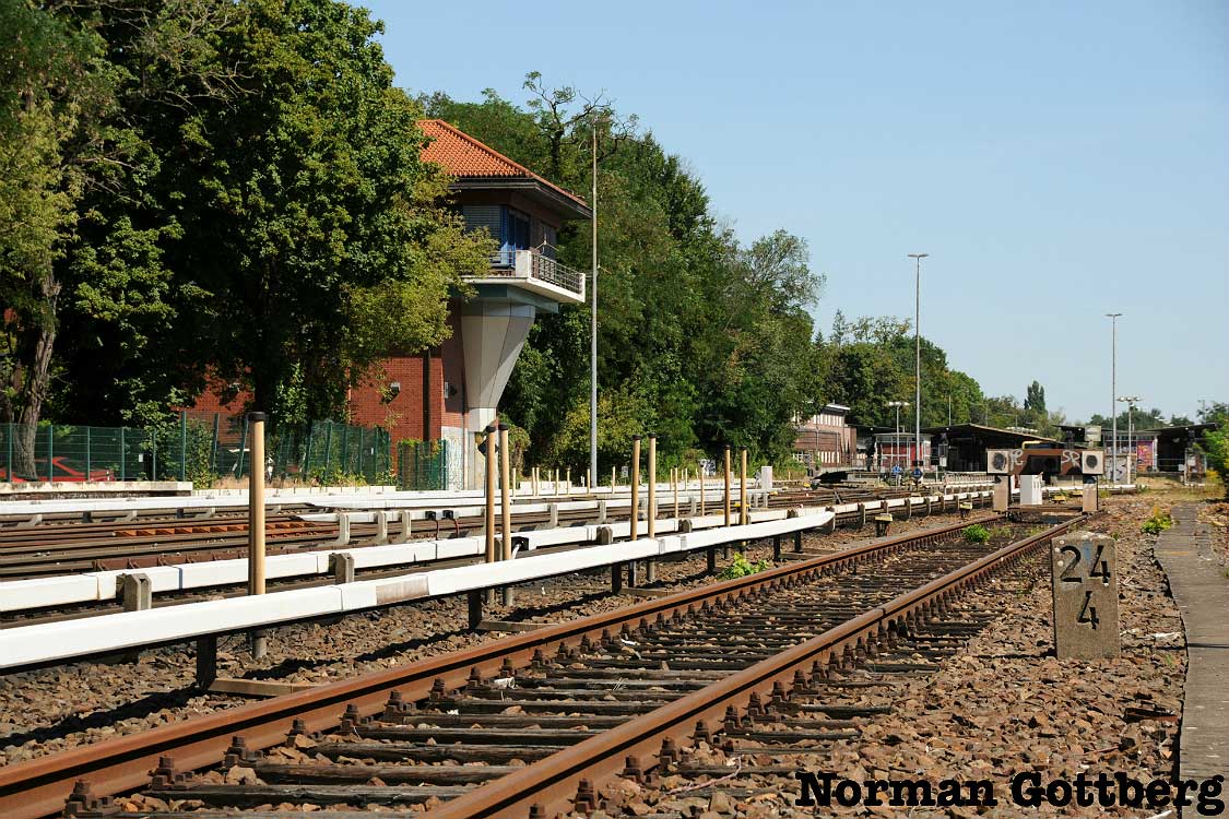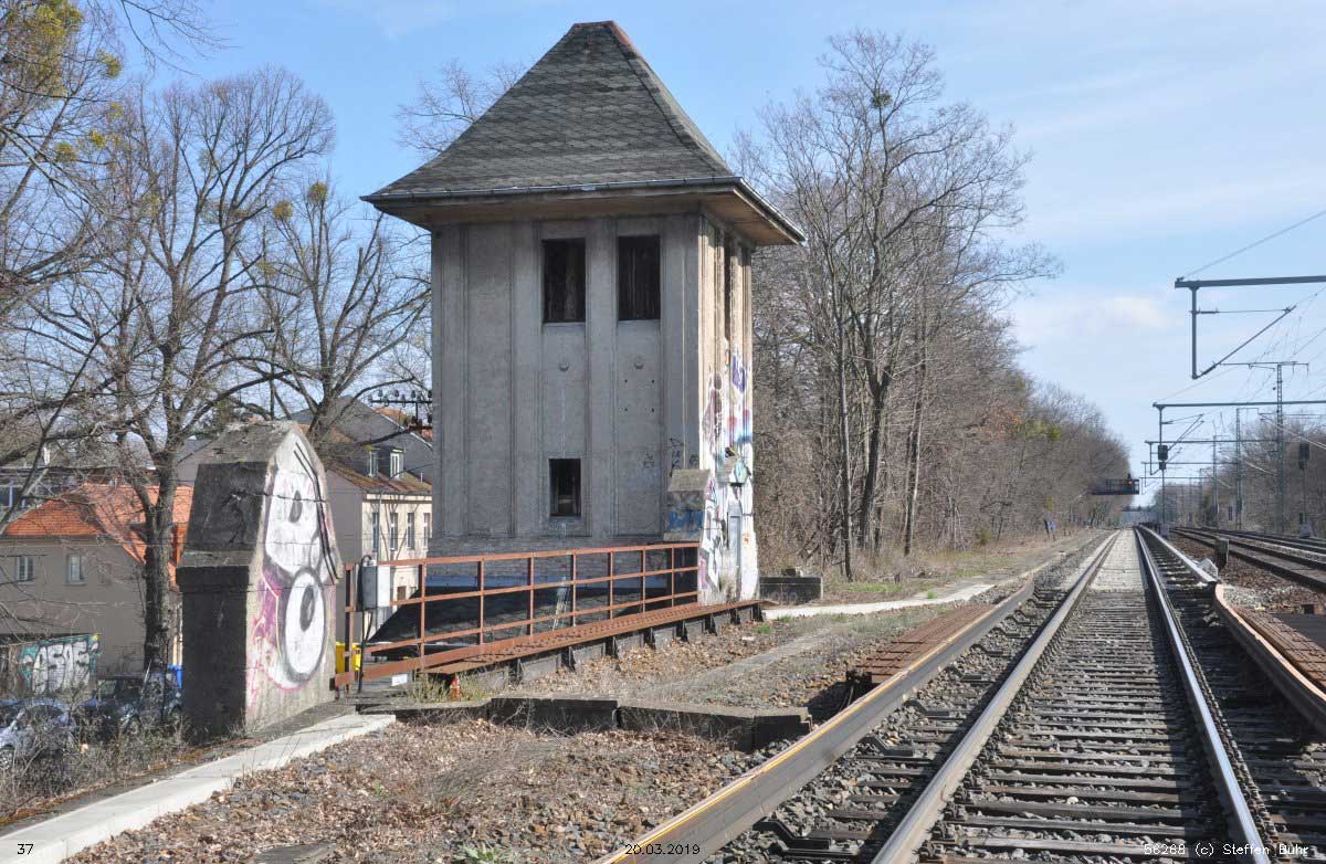km 19,23 der Strecke (Berlin Schlesischer Bf 0,0) - Charlottenburg 11,26 - km 14,55 - Auswanderer Bf Ruhleben 18,29 - Spandau Hbf 19,23 (F) | |||