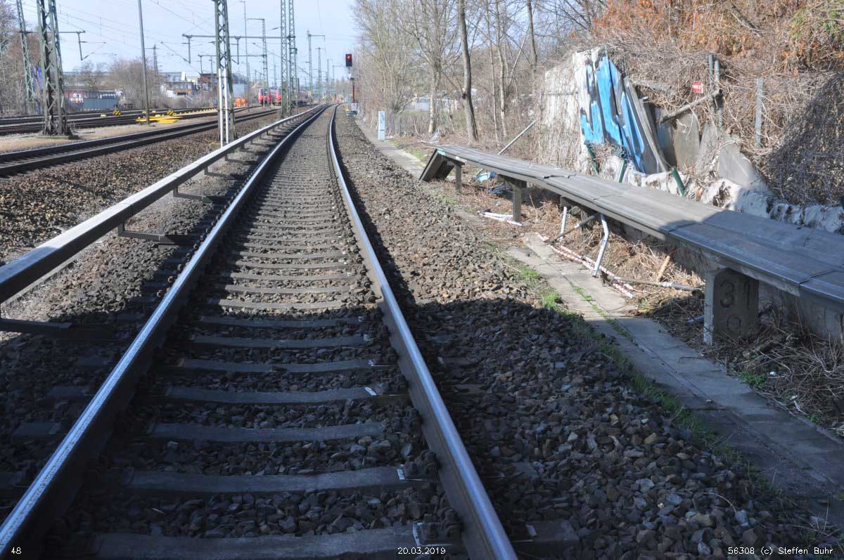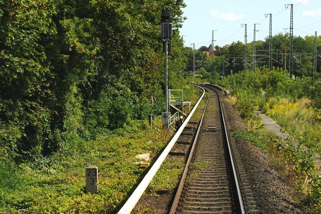 Nach links zur Einmündung in die Strecke vom Lehter Bf bzw. Hamburger Bf