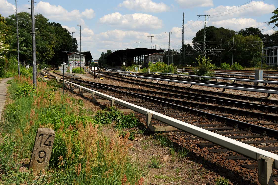 Nach rechts die Gütergleise der Ringbahn
