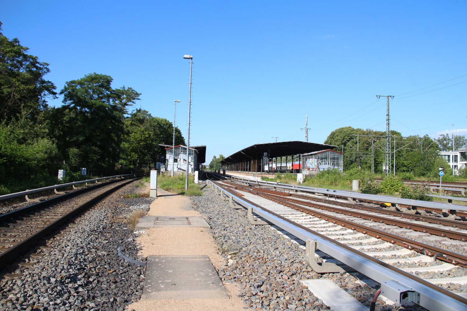 Grunewald Pbf | 14,70 | km 3,32 der Strecke Charlottenburg 0,0 (später: -0,12) - Wiesenburg 77,83 - Güsten 147,34 - Blankenheim Trennungsbf 188,06 | |