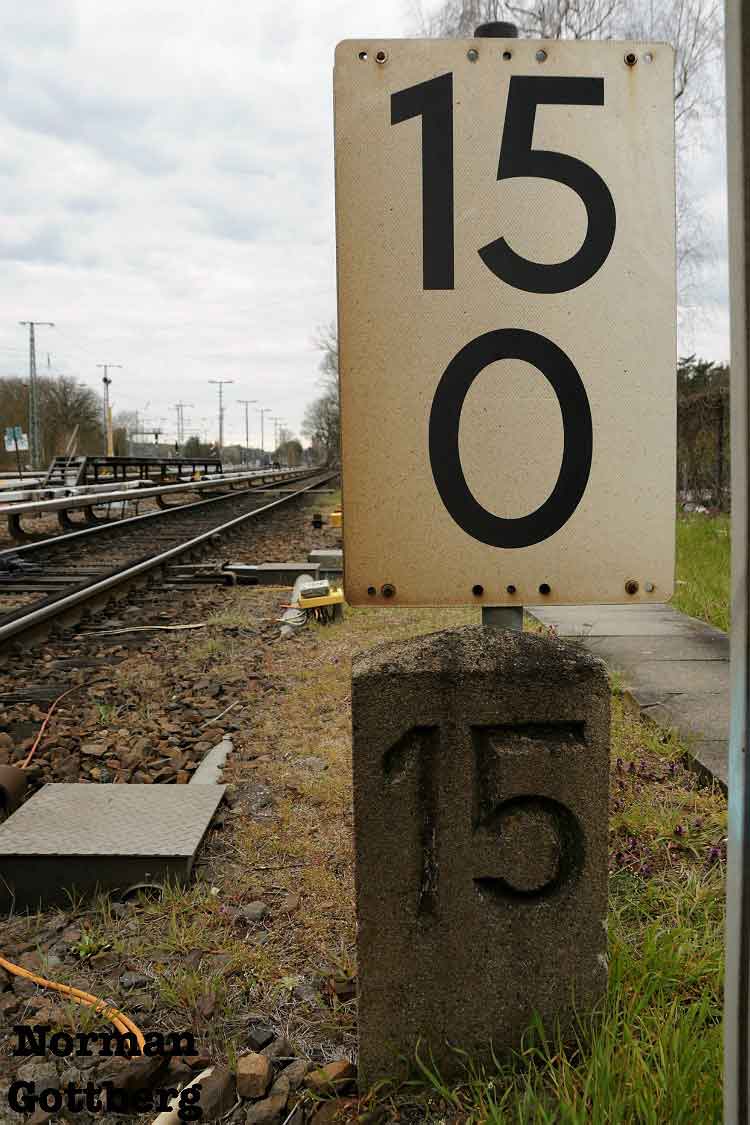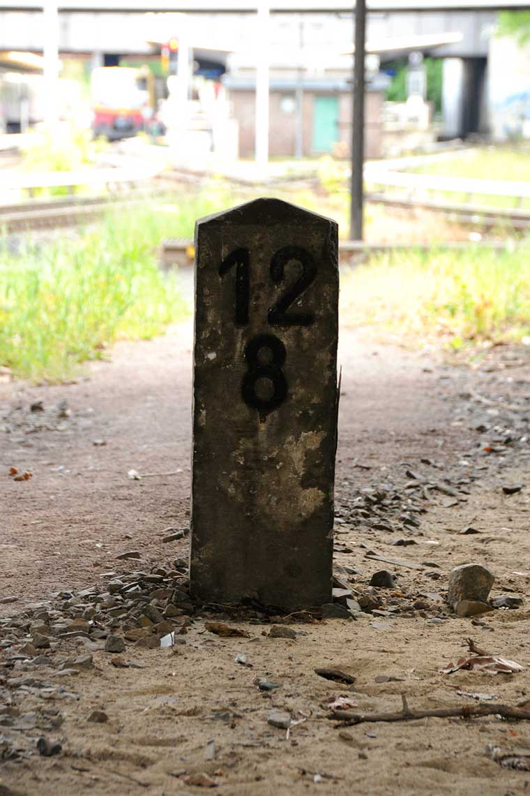 è | km 11,26 der abgehenden Strecke (Berlin Schlesischer Bf 0,0) - Charlottenburg 11,26 - Witzleben 13,07 mit weiterlaufender Kilometrierung | ||