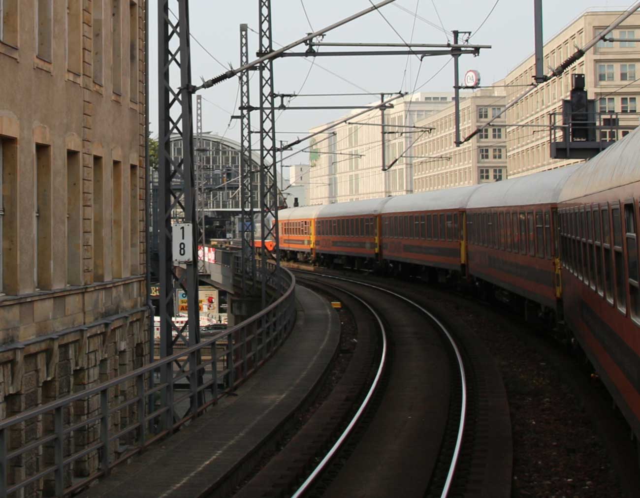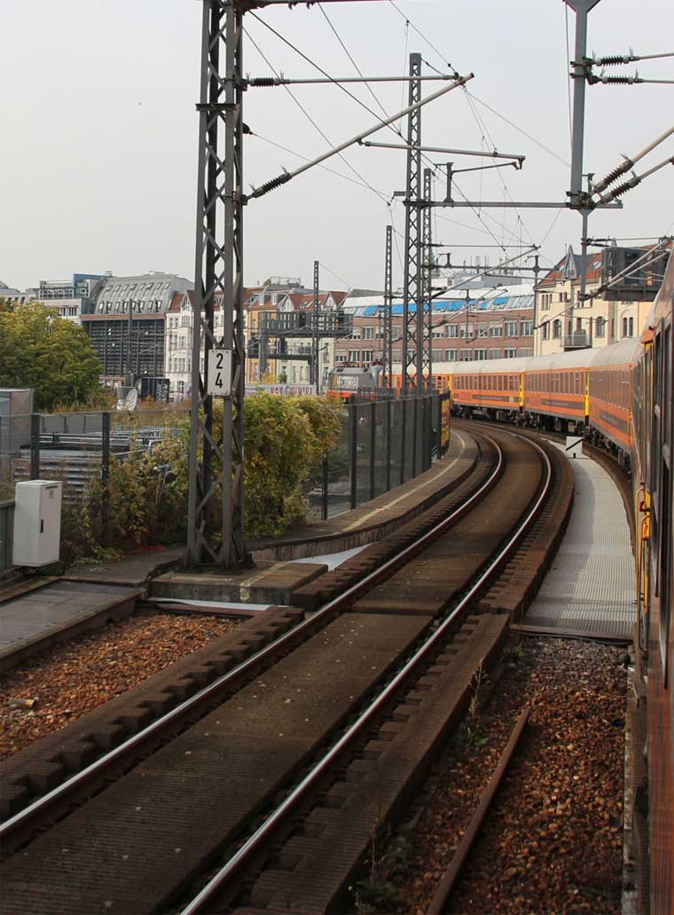 km 0,4 (Fernbahn) in Berlin Ostbahnhof - Blick Richtung Westkreuz