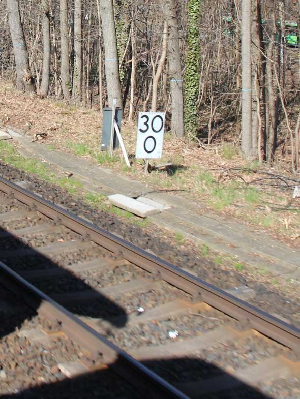 km 0,0 der Strecke Grunewald Pbf 0,0 - Grunewald Betriebsbf 1,1 - Witzleben 2,70 - Westend 3,92 - Charlottenburg Gbf 4,66 (Gd) |