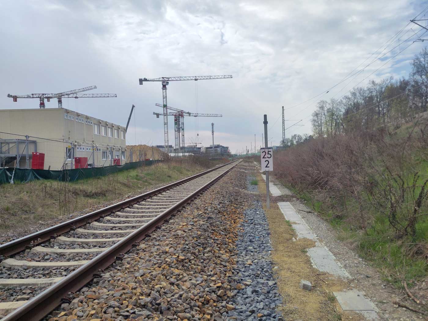 Rechts oben die Dresdner Bahn (6135) mit km 6,0