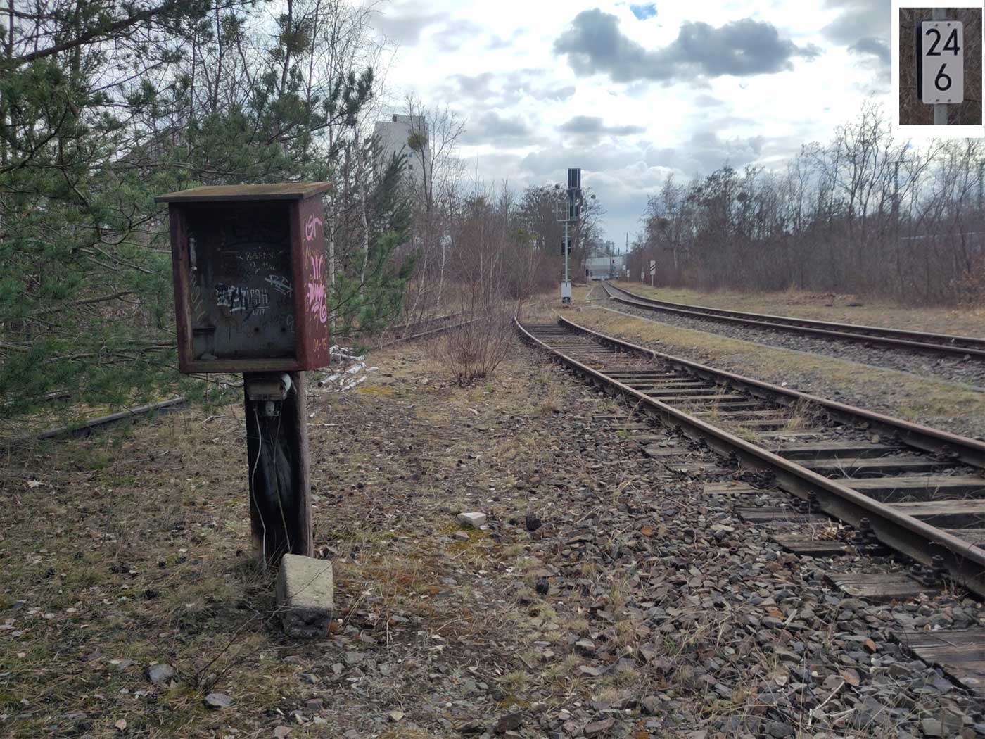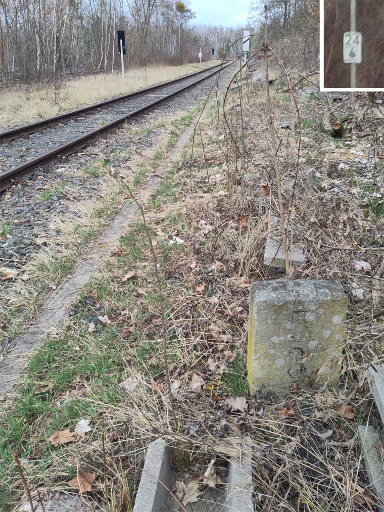 km 22,8 (Tafel links) gehört zu den Güter- bzw. Fernbahngleisen der Ringbahn