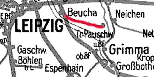 Links die militärische Bahn Trebsen (Mulde) - Neichen