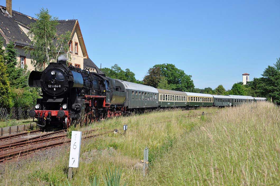 km 16,7 in Trebsen (Mulde) - 52 8154 mit Sonderzug