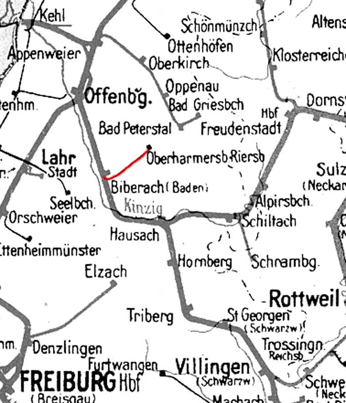 Stand der Kilometrierung: 2019 Biberach (Baden) 0,030 - Oberharmersbach-Riersbach 10,620