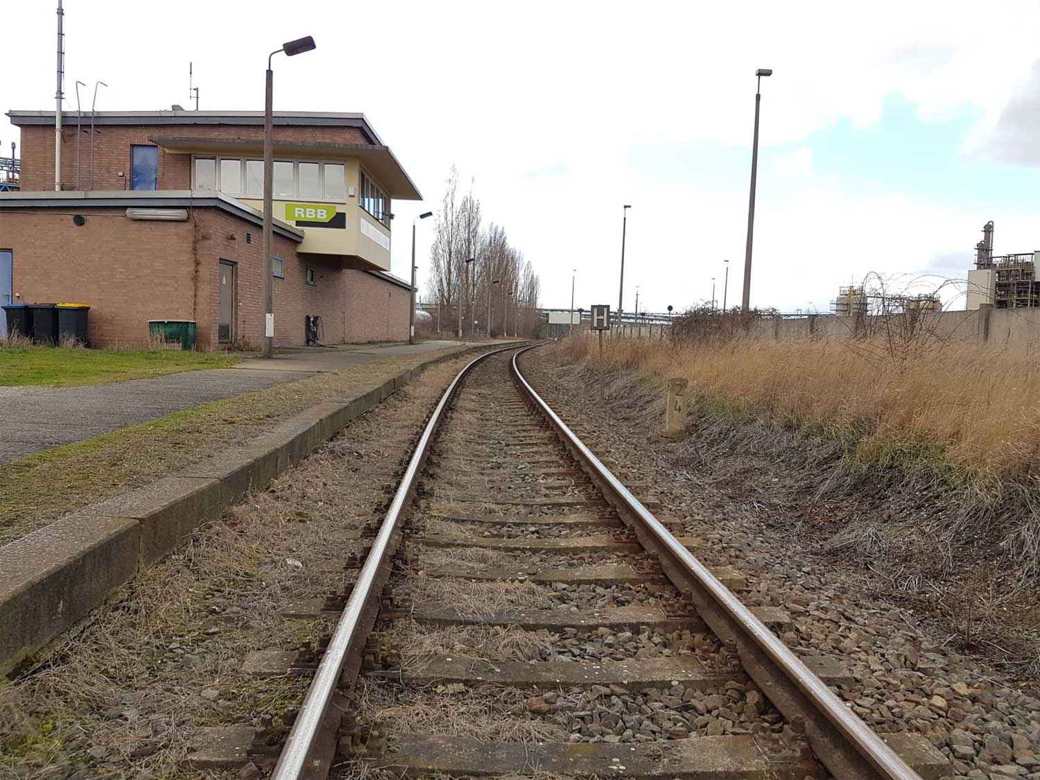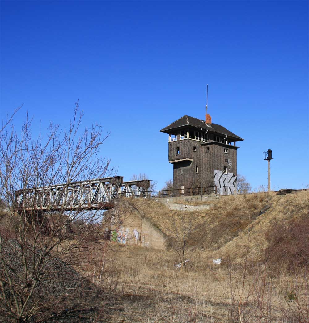 km 1,4 (oben) zwischen Bitterfeld und Grube Antonie und Stellwerk BG 5
