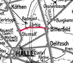 km 131,64 der Strecke Berlin Anhalter Bf -0,07 - Jüterbog 62,82 - Bitterfeld 131,64 - Halle (Saale) Hbf 161,65 | ||