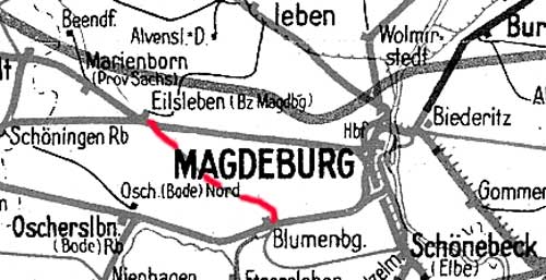Eilsleben (Bez Magdeburg) | 25,30 | km 171,68 der Strecke Berlin Potsdamer Bf 0,0 - Magdeburg Hbf 141,87 - Eilsleben 171,68 - Schöningen Reichsbahn 189,00 |